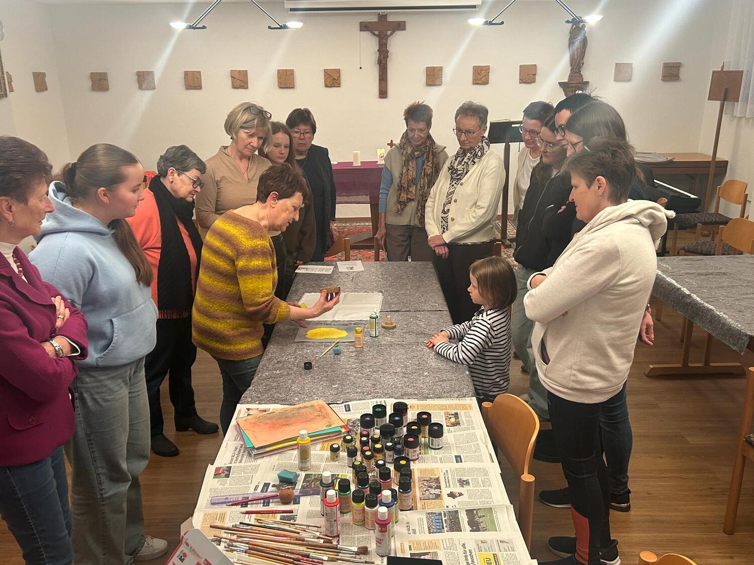 Ein großer Dank gilt Frau Christa Fraunschiel für ihre Zeit, ihre Geduld und das Teilen ihres handwerklichen Wissens. Dank ihres Engagements war dieser Abend nicht nur eine Lehrstunde in Sachen Technik, sondern auch eine wertvolle Begegnung in unserer Pfarrgemeinschaft.