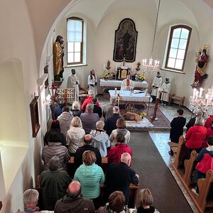 Gut gestärkt versammelte sich die Gemeinschaft anschließend in der Filialkirche zur feierlichen Heiligen Messe mit Pater David Gold. In seiner Predigt schlug er die Brücke vom Evangelium zu unserem heutigen Alltag: Auch wir dürfen darauf vertrauen, dass der Auferstandene uns auf unseren persönlichen Lebenswegen begleitet – oft unerkannt, aber immer gegenwärtig.