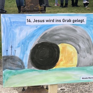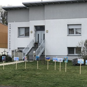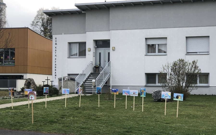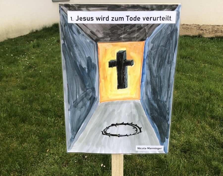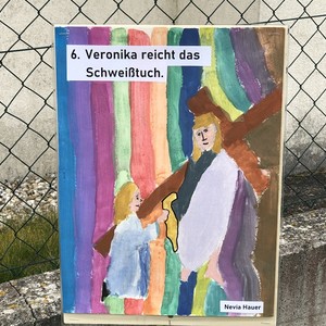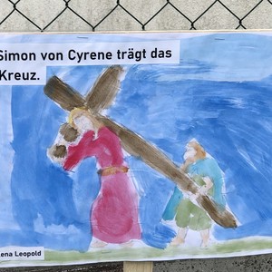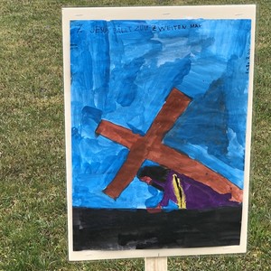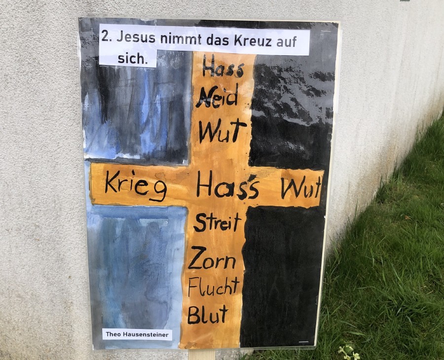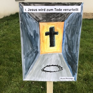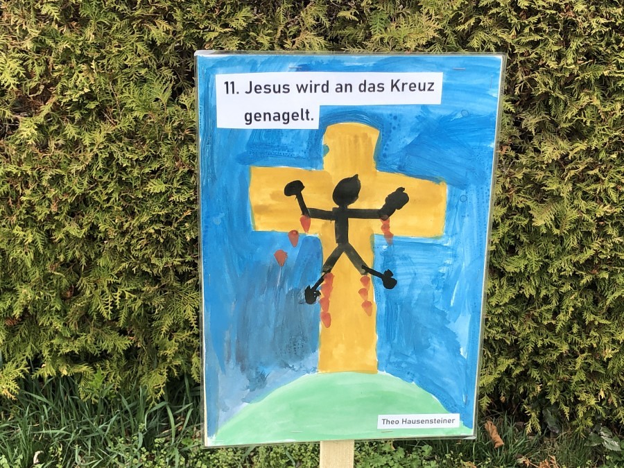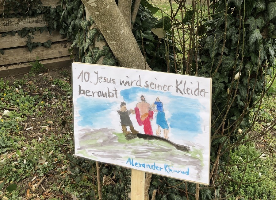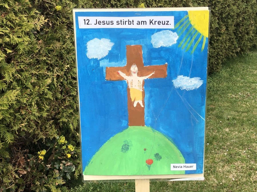 In diesem Jahr haben die Erstkommunionskinder den Kinderkreuzweg selbst gestaltet. Jedes Kind durfte zwei Stationen gestalten. Mit den Eltern haben sie sich in das Thema vertieft. Daraus entstanden wunderschöne Kunstwerke. Diese visualisierten den Leidensweg Jesu nochmal gut.