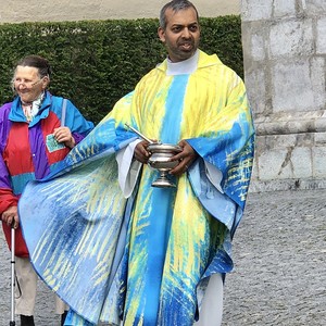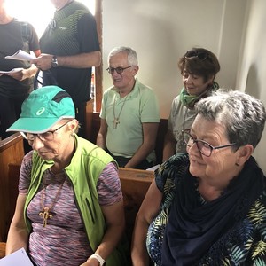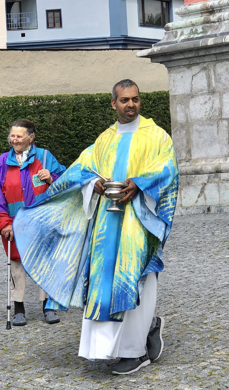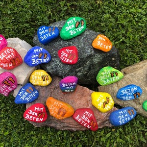 Am 12. Juli um 5:00 Uhr wurde die Wallfahrt mit dem Reisesegen durch Pfarrer Shinto gestartet, und 18 Pilgerinnen und Pilgern sowie zwei Begleitfahrzeuge machten sich mit Gottes Segen auf den Weg. Jeder bekam einen kleinen bemalten Stein mit einem Smiley auf der Rückseite. Dieser Stein half uns auch in schwierigen Stunden den oft beschwerlichen und anstrengenden Weg zu bewältigen.