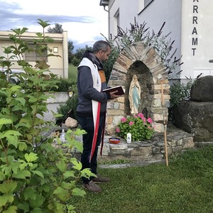 Am dritten Tag begrüßten wir unseren Pfarrer Shinto, der sich der Pilgergruppe anschloss. Wieder führte uns der Weg durch wunderschöne Landschaften, Wiesen, Auen und Wälder u. a. über das Preiner-Gscheid zum „Kobersdorfer-Wallfahrtsmarterl“. Nach einer besinnlichen Andacht setzten wir unsere Wallfahrt Richtung Frein, zu unserem nächsten Quartier, fort. Mit der Abendmesse in der Klemenskirche ,nahe unserer Herberge, bedankten wir uns für den erlebnisreichen Tag. Weitere 20km waren geschafft und wir holten uns Mut und Kraft für den letzten Tag. Mit einem fröhlichen Liederabend ging der Tag zu Ende.