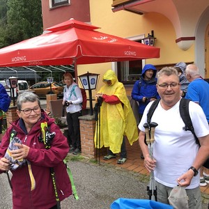 Am vierten und letzten Tag wurden wir mit Nebel und Regen geweckt, was der guten Laune und dem Ziel ,der Wallfahrtskirche in Mariazell näher zu kommen, nichts anhaben konnte. Nach gut 20 km Fußweg, Rosenkranzgebet und gegenseitigen Aufmuntern haben wir um ca. 13:00 Uhr das „Luckerte Tor“ am Kreuzberg durchschritten und uns über die Ankunft in Mariazell gefreut. Dort trafen wir unsere Buswallfahrer aus dem Pfarrverband Hl. Nikolaus.
