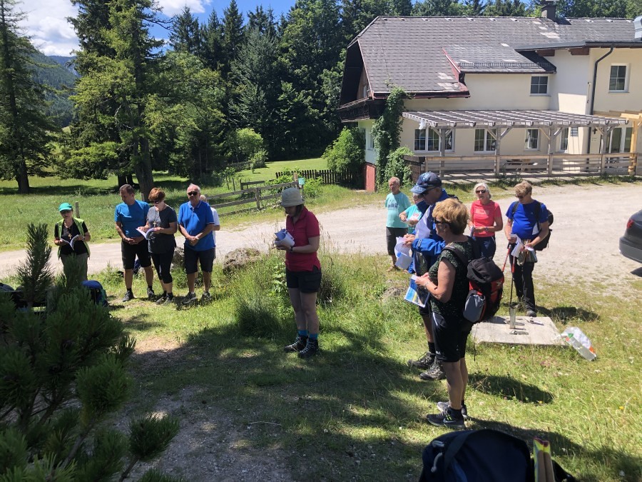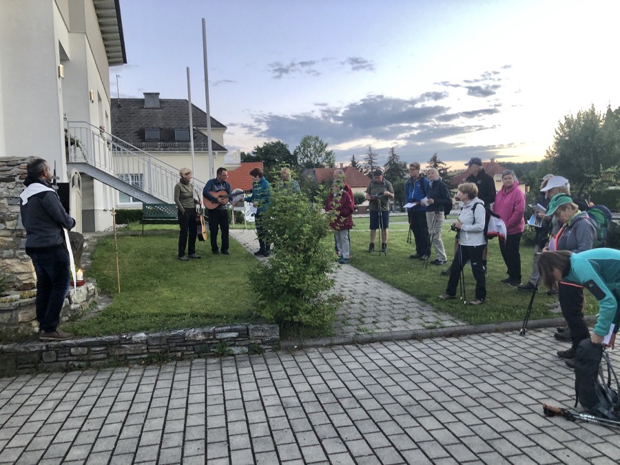 Am nächsten Tag ging es nach einem stärkenden Frühstück und dem Morgenlob weiter Richtung Puchberg, Mamauwiese zur Voiskapelle und Schwarzau im Gebirge zu unserer nächsten Station zum „ Mitterhofer-Bauer“, wo wir uns mit einem Abendlob ,für den reich beschenkten Tag, bedankten. Wieder waren rund 30 km Fußweg geschafft, wobei besonders das letzte steile Stück des Weges eine besondere Herausforderung war.