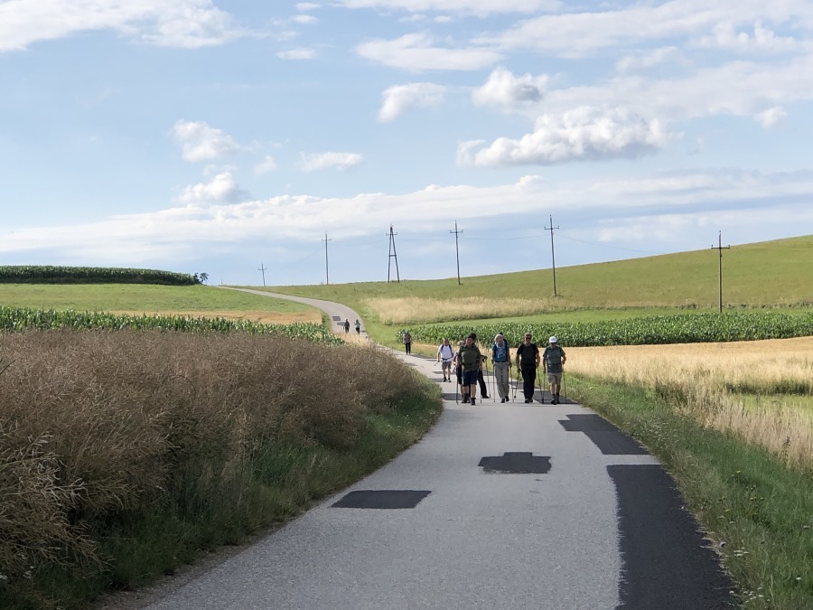 Am ersten Tag führte uns der Pilgerweg über Hochwolkersdorf, Pitten und Breitenau nach Grünbach am Schneeberg zur Schubertlinde, wo wir im Gasthof Mohr nach rund 50 km Fußmarsch den Tag ausklingen ließen. Ein besonderes Erlebnis bei dieser Wallfahrt sind die Rosenkranzgebete während des Gehens. „ Beten mit den Füßen“,nachdenken über das Leben, gute aufbauende Gespräche führen, wenn es einmal schwer fällt den Weg zu gehen.
