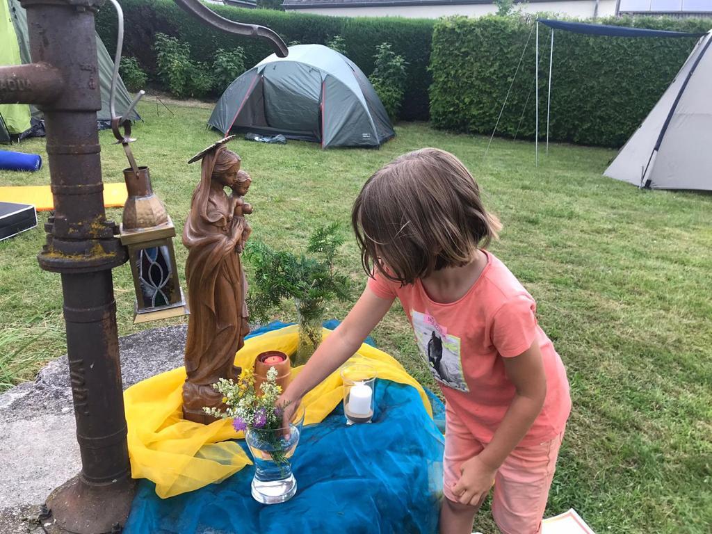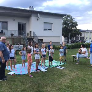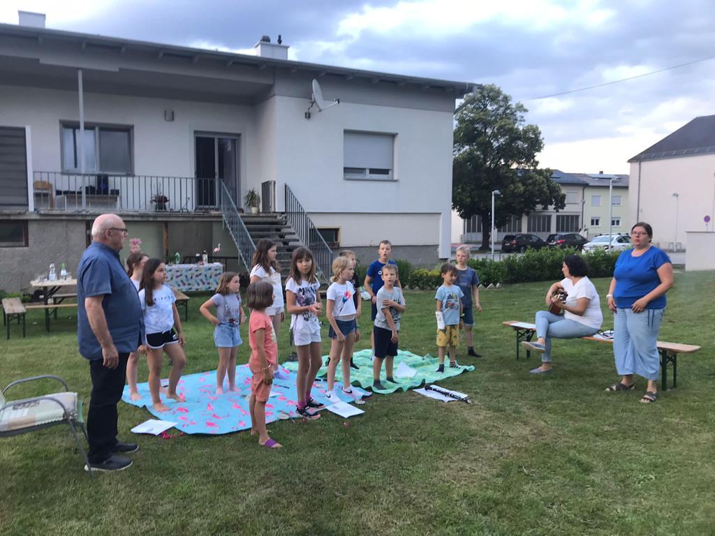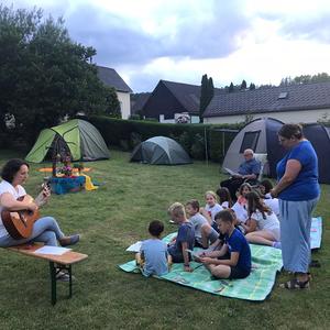 Ein stürmisches Gewitter ließ die Kinder leider nicht in ihren Zelten die Nacht verbringen. Trotz allem wurde die Nacht gemeinsam verbracht – im angrenzenden Pfarrsaal.