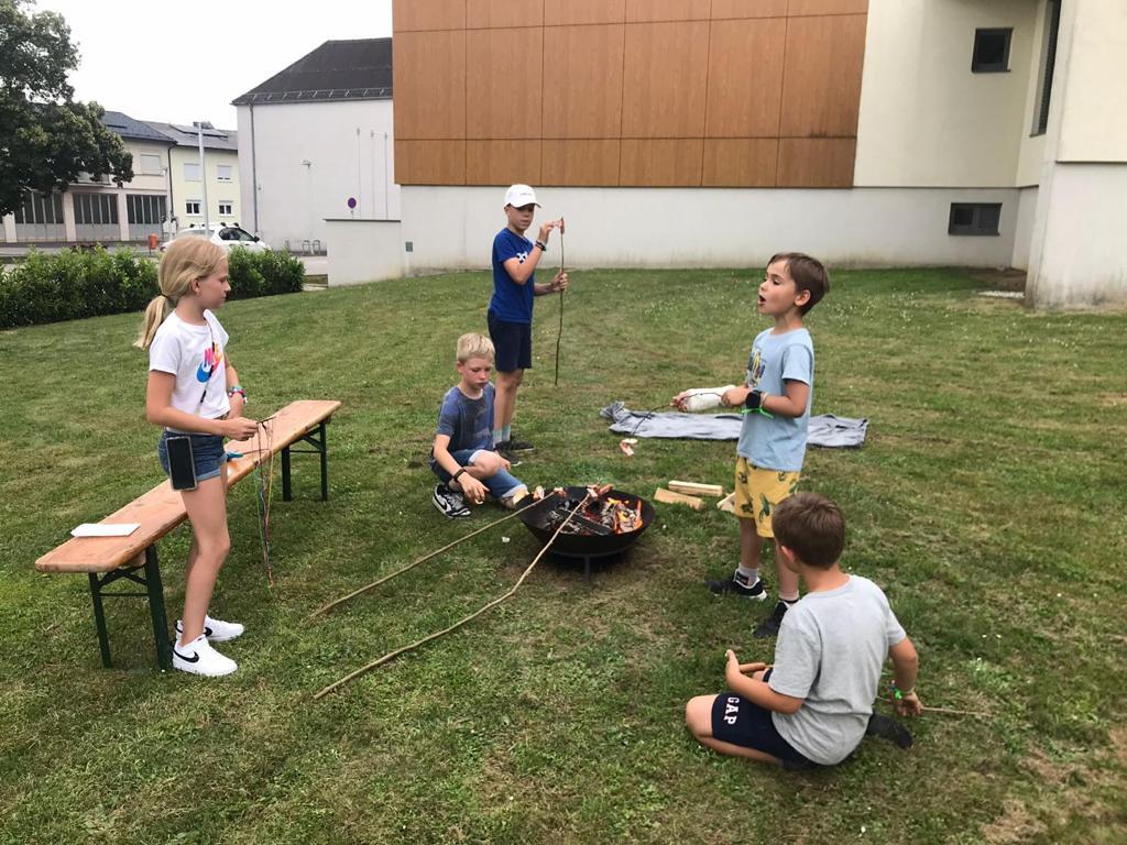 Ende Juni fand heuer das 2. Kinderzeltlager im Pfarrhofgarten Kobersdorf statt. Nach dem Aufbau der Zelte hat der Nachmittag dann mit einer Marienandacht begonnen. Spiel, Spaß, Musik, Grillen am Lagerfeuer und ein Freiluftkino durften die 17 Kinder mit ihren Betreuerinnen Andrea und Birgit und Pfarrer Shinto bis in die späten Abendstunden hinein erleben.
