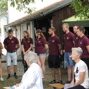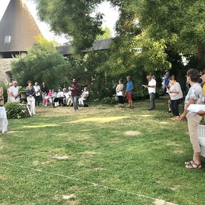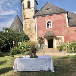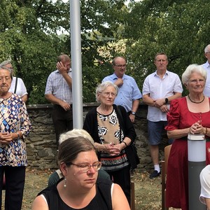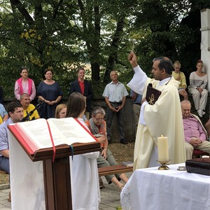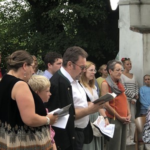 Als Abschluss des Marienfeiertages fand dann am Abend noch eine Andacht im Schloßgarten statt, zu der alle Gläubigen des Pfarrverbandes geladen waren und auch zahlreich teilnahmen.