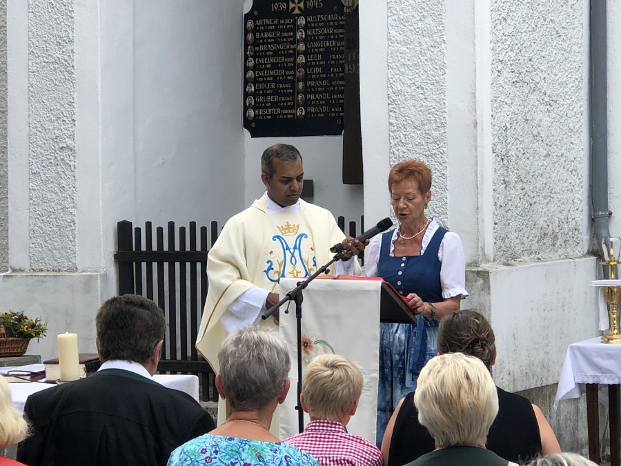 Im Rahmen des Gottesdienstes fand auch die Kräuterweihe statt – danke den tüchtigen Damen für das Sammeln und Binden der Kräuter, die von den Gottesdienstbesuchern auch mitgenommen werden durften.