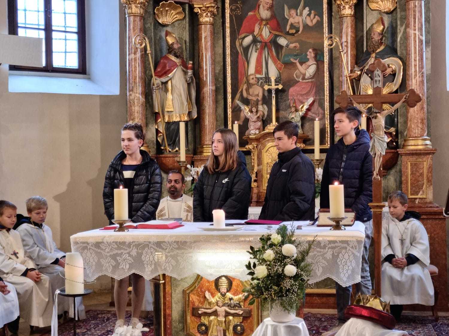 Genauso groß war die Freude vor 10 Jahren als Lena, Amelie, Paul und Valentin den Weg zu den Ministranten gefunden haben. In den Jahren, in denen sie als Minis gedient haben, konnten sie viel erleben und uns allen viel Freude bereiten. Die Pfarrfamilie möchte sich ganz herzlich für euer Engagement und eure Zeit bedanken, in der ihr den Gottesdiensten immer einen würdigen Rahmen verliehen habt.