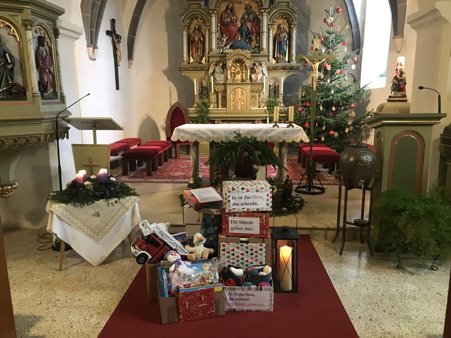 In der Kirche wird ab dem 1. Adventsonntag vor dem Altar ein großer Korb stehen, wo du deine Spende hineinlegen kannst. Bis zum vierten Adventsonntag können Spenden abgegeben werden.