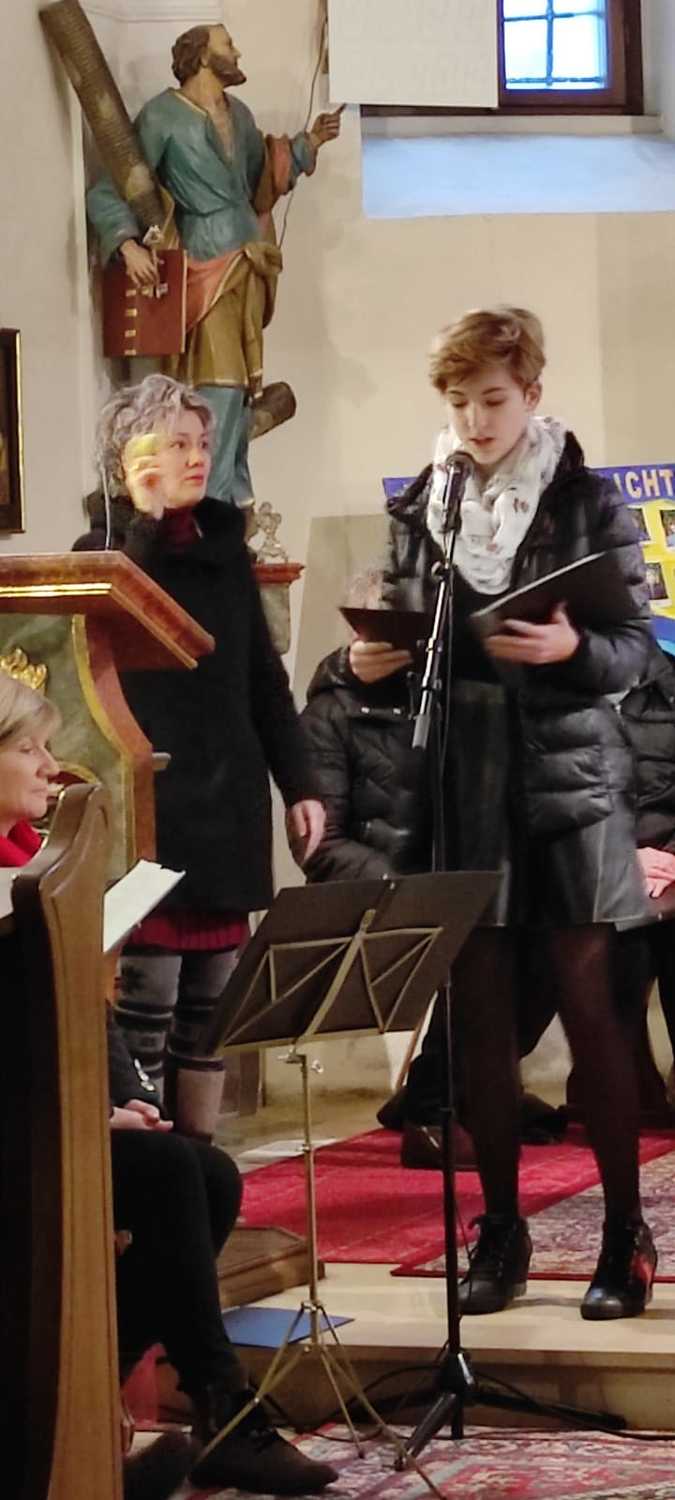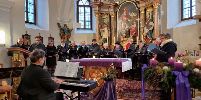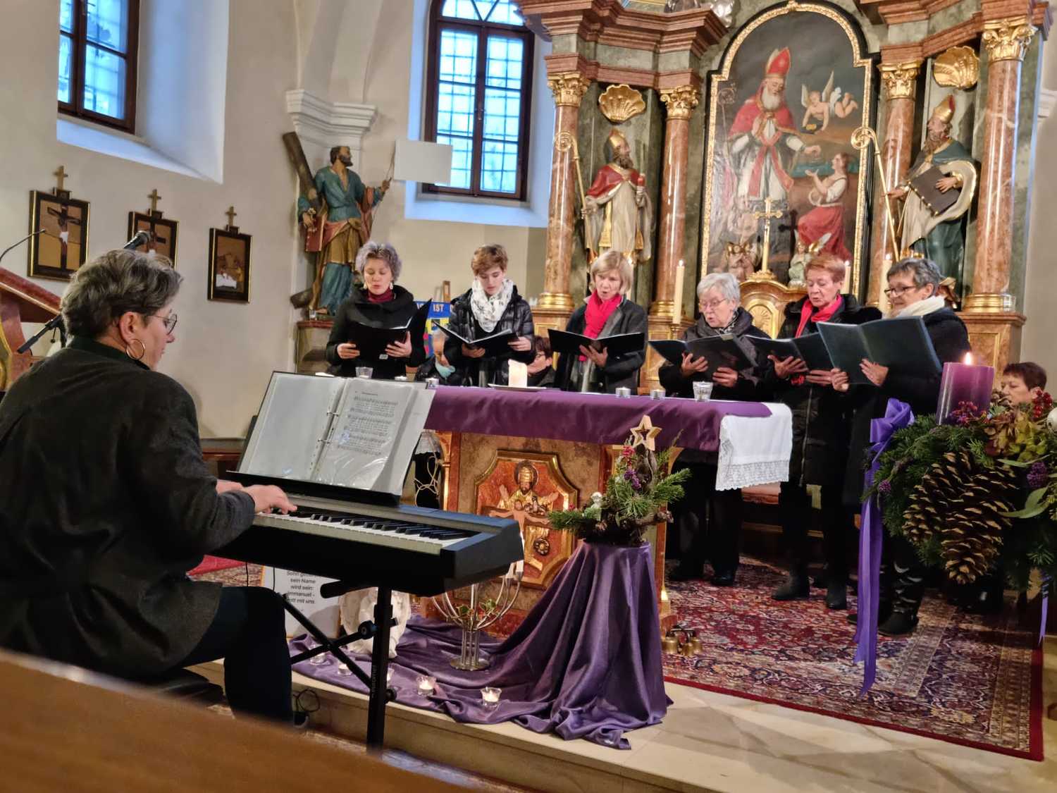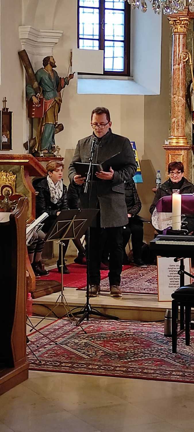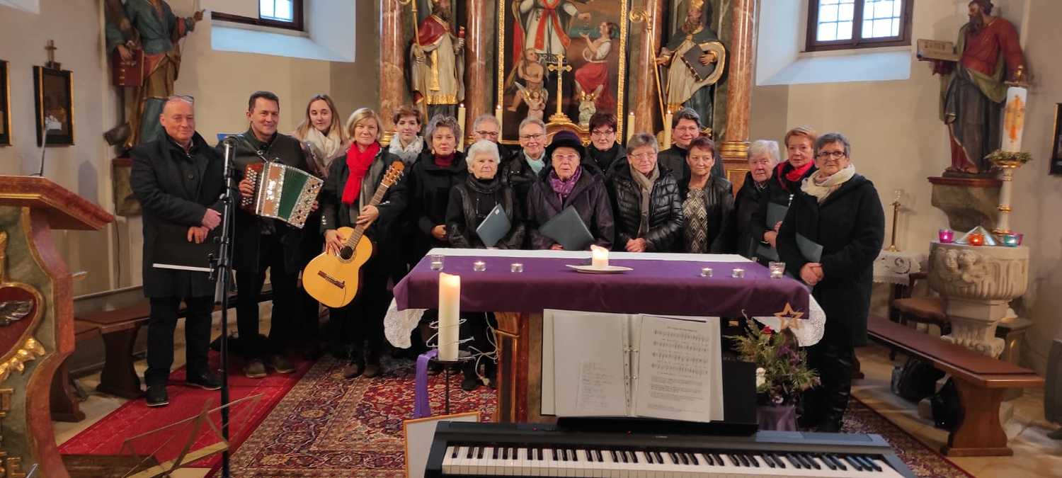 Der Kirchenchor hat die volle Kirche wirklich in Stimmung gebracht. Es war eine besinnliche, sehr stimmungsvolle Stunde mit Texten und Gesang. Auch die Gäste hatten die Möglichkeit mitzusingen.