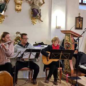 Zwischendurch haben Alina Leopold (Querflöte), Christa Reiner (Gitarre) und Alexander Hemmerich (Knöpferlharmonika) einige weihnachtliche Instrumentalstücke gespielt.