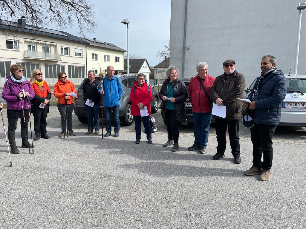 In der Pfarrkirche Markt Sankt Martin feierten die Pilgerinnen und Pilger eine Kreuzwegandacht. Die Verknüpfung des Leidensweges Christi mit dem eigenen Leben und mit Bibelstellen aus den Evangelien war berührend und hat nachdenklich gemacht.