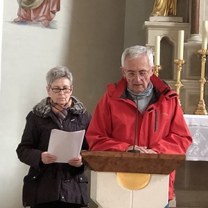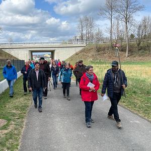 Nach dem Pilgersegen und einem gemeinsamen Gebet zum heiligen Martin brach die Gruppe nach Markt Sankt Martin auf. Bei der ersten Statio bedachten die Pilgerinnen und Pilger in einem Wechselgebet, was ihnen heilig ist, was sie schützen und wofür sie sich einsetzen wollen. Die Sorgen um die Schöpfung wurden Gott ebenso anvertraut, wie das persönliche Engagement für Umwelt und Gesellschaft. Bei der zweiten Statio wurde um den Schutz der Gottesmutter Maria gebetet.