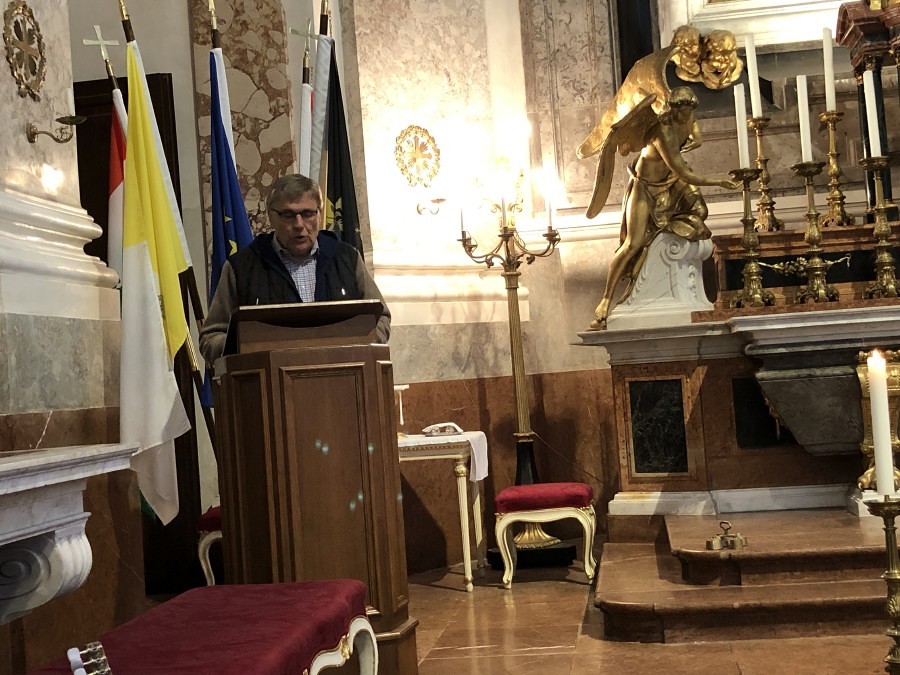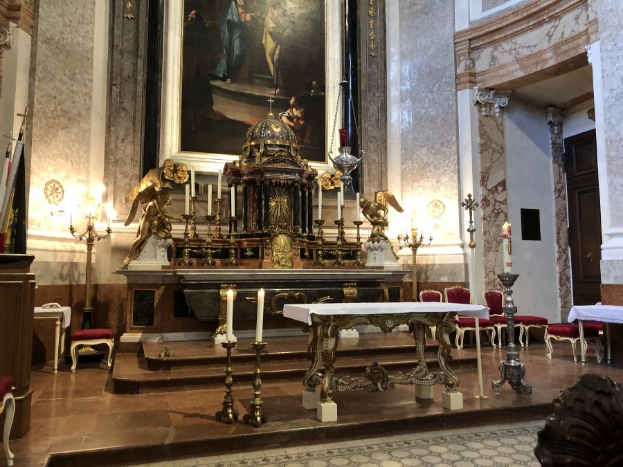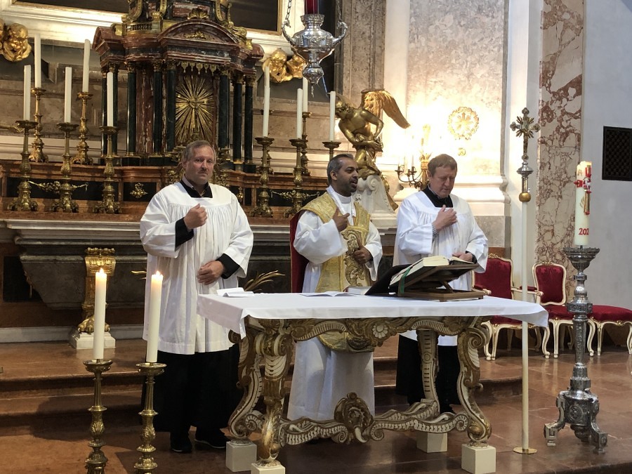 Um 9:00 Uhr feierte Pfarrer Shinto mit den Reiseteilnehmern einen Gottesdienst in der prächtigen Kapelle von Schloss Schönbrunn. Als Ministranten fungierten der Feuerwehrkommandant von Kobersdorf, Gerhard Klafsky und Werner Schock.