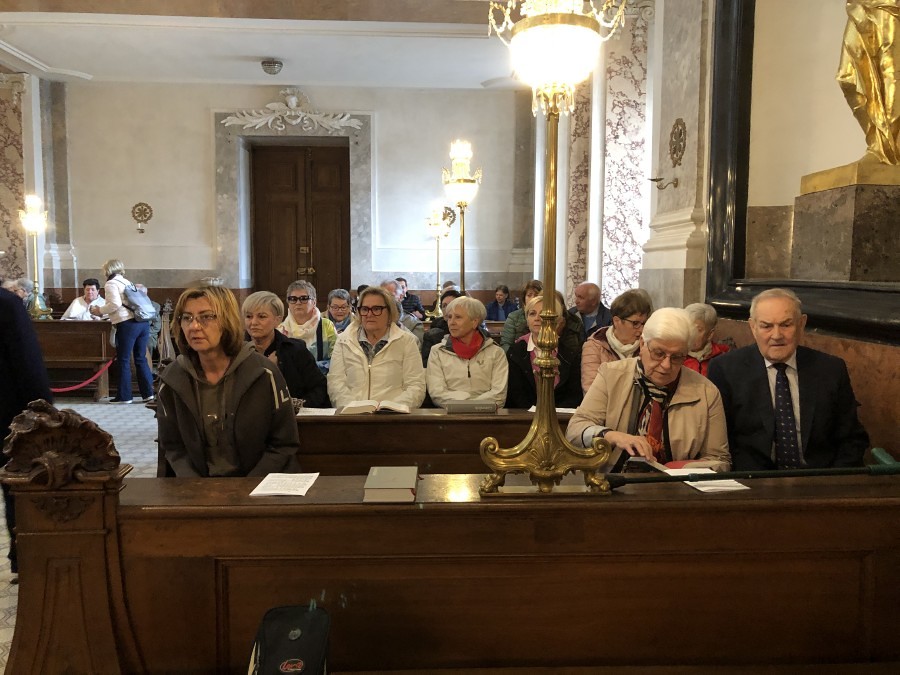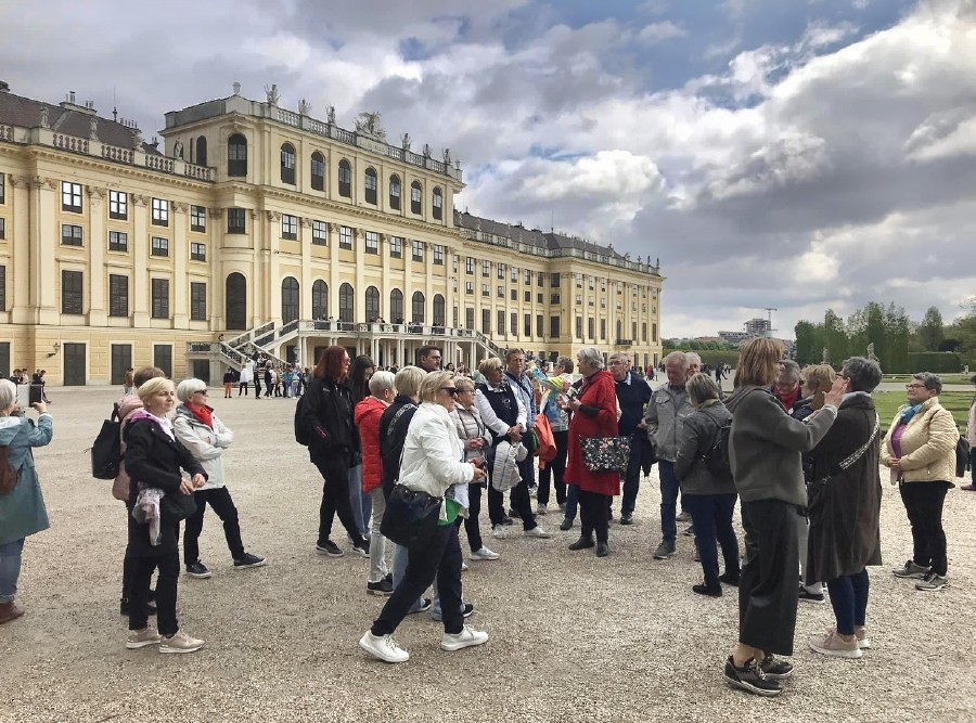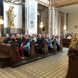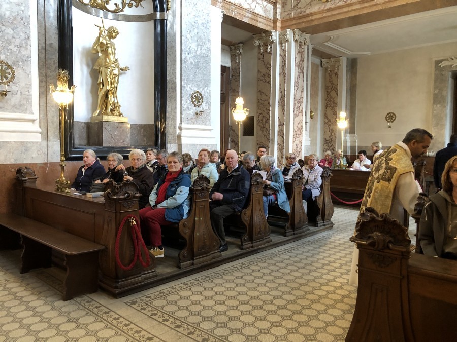 Im Anschluss an die Hl. Messe erfolgte – in zwei Gruppen – ein geführter Rundgang durch den Schlosspark und eine Besichtigung der Prunkräume des Schlosses Schönbrunn. Nach dem Mittagessen ging es mit dem Bus über die Höhenstraße zum Kahlenberg, wo die Gläubigen einen herrlichen Ausblick auf die Bundeshauptstadt Wien genießen konnten. Ein Muss war natürlich auch eine Kurzvisite in der St. Josef-Kirche am Kahlenberg.