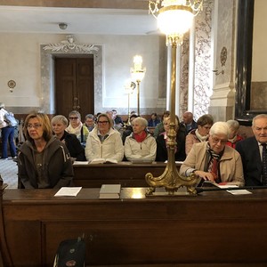 Beendet wurde der Ausflug mit einem Besuch der Wotrubakirche am Georgenberg in Wien-Mauer, welche in den 70-ger Jahren des 20. Jahrhunderts nach Entwürfen des Bildhauers Fritz Wotruba erbaut wurde. Das Kirchengebäude ist stilistisch dem Brutalismus zuzurechnen. Die Wotrubakirche, die heute zu den touristischen Sehenswürdigkeiten von Wien zählt, wirkte auf die knapp 60 Reiseteilnehmer sehr beeindruckend.