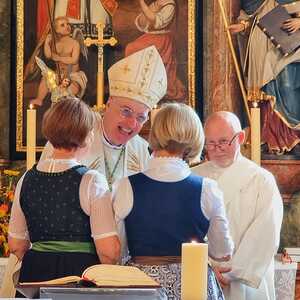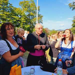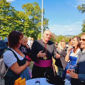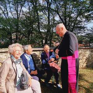 Bei der anschließenden Agape kam unser Herr Bischof mit Groß und Klein und Alt und Jung ins Gespräch und so mancher freut sich über ein Erinnerungsfoto von der netten Begegnung.
