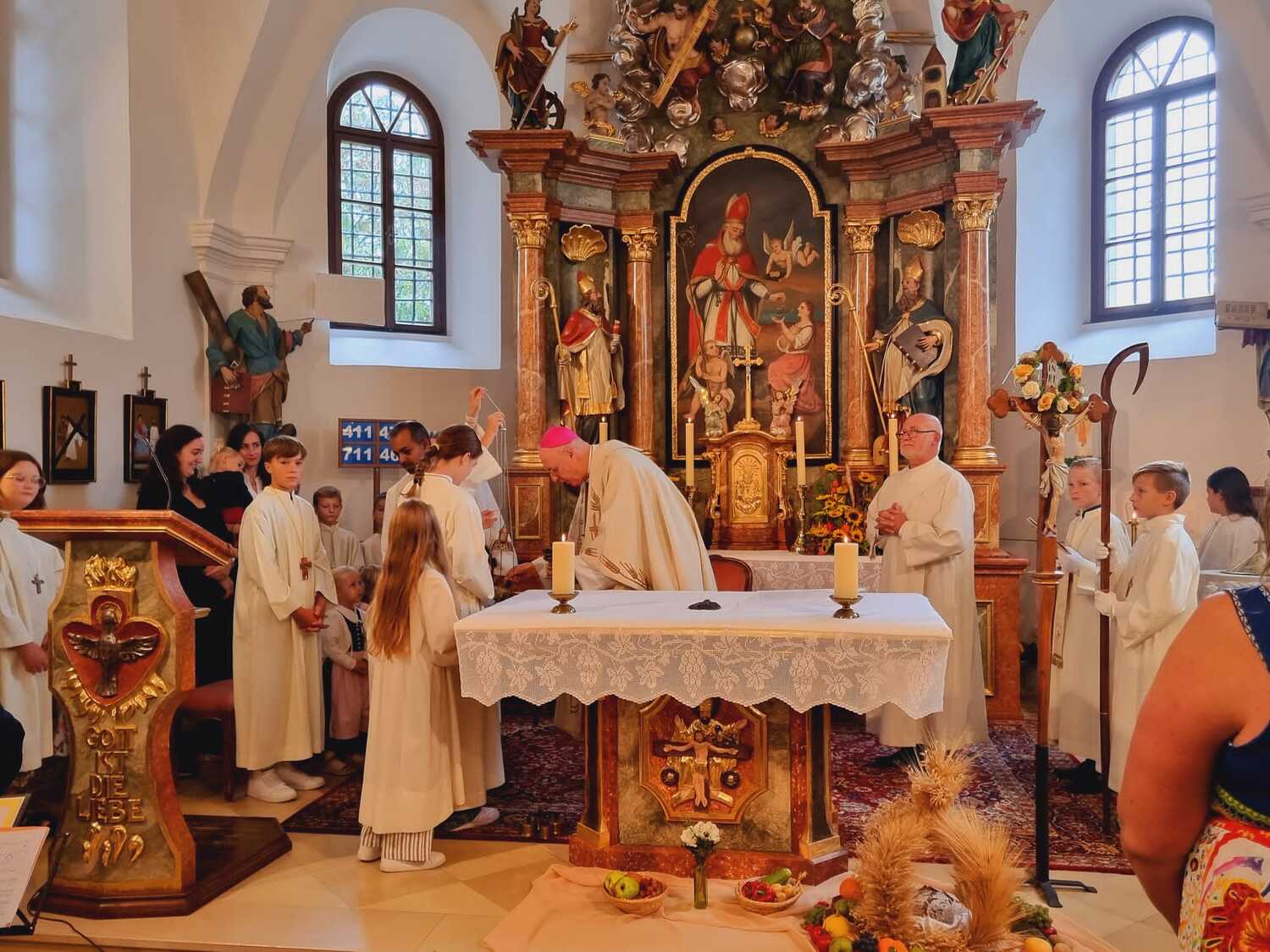 So wurde am Samstag, dem 30. September mit einem Dankgottesdienst der Abschluss der sehr gut gelungenen Kirchenrenovierung gemeinsam mit dem Erntedankfest gefeiert.