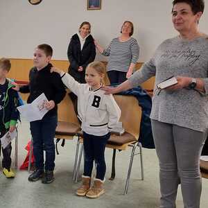Am Donnerstag, dem 7. März luden die Erstkommunionkinder zu einem Kreuzweg in den Pfarrgarten Lackenbach ein. Wegen des unbeständigen Wetters wurde die Andacht in den Pfarrsaal verlegt.