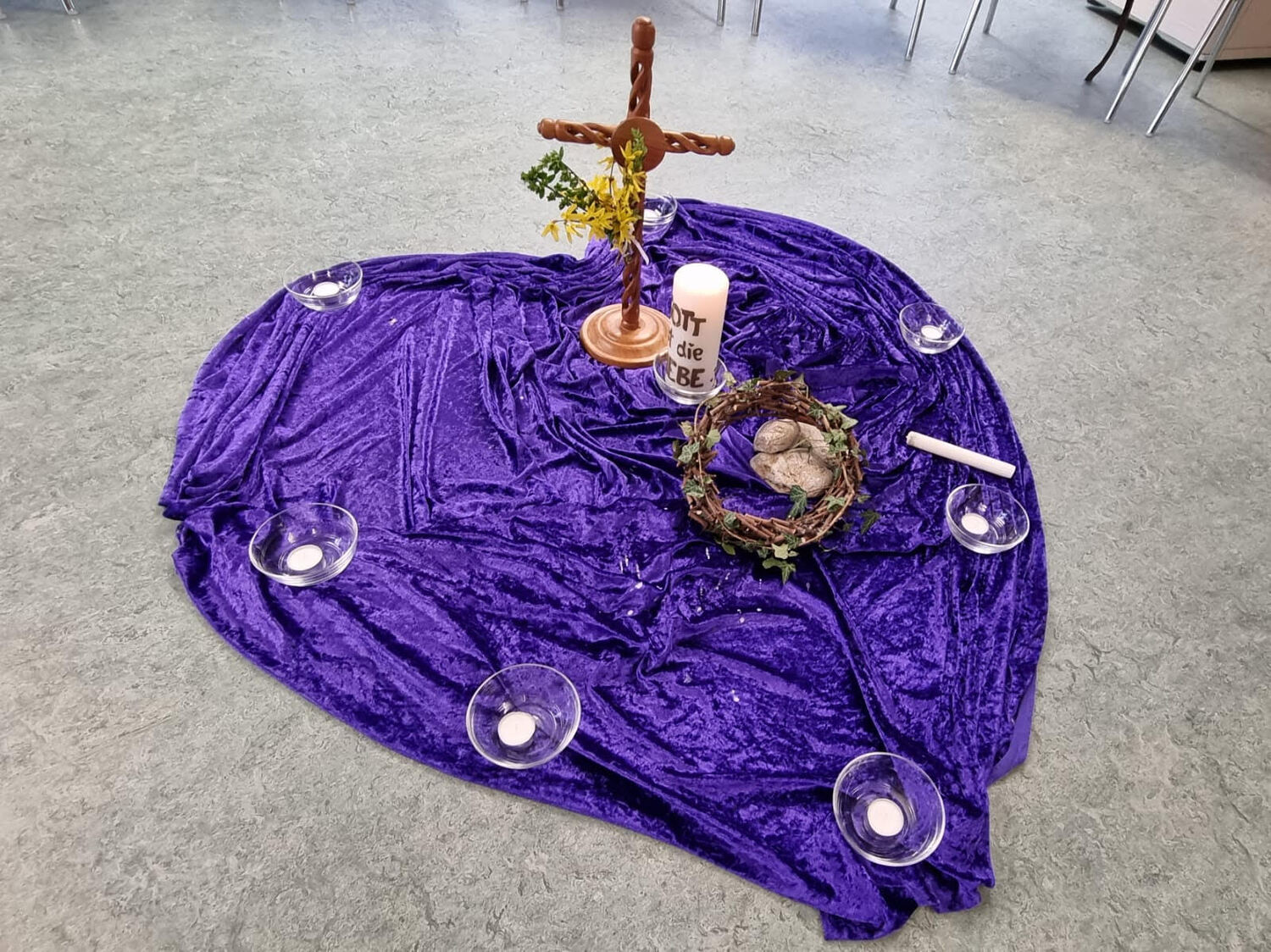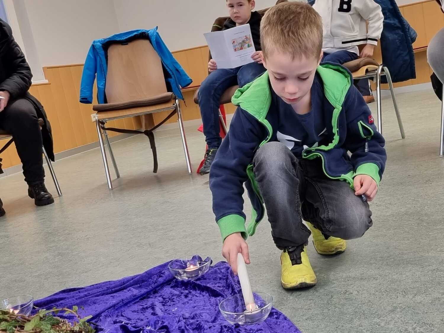 In 6 Stationen wurden den Kindern die letzten Stunden Jesu nahe gebracht. Dabei ist ihnen deutlich geworden, dass Leid und Grausamkeit nicht das letzte ist, sondern der Kreuzweg mit der Auferstehung endet. Jede der Stationen beinhaltete eine Fürbitte, dazu wurde von den Kindern eine Kerze entzündet.