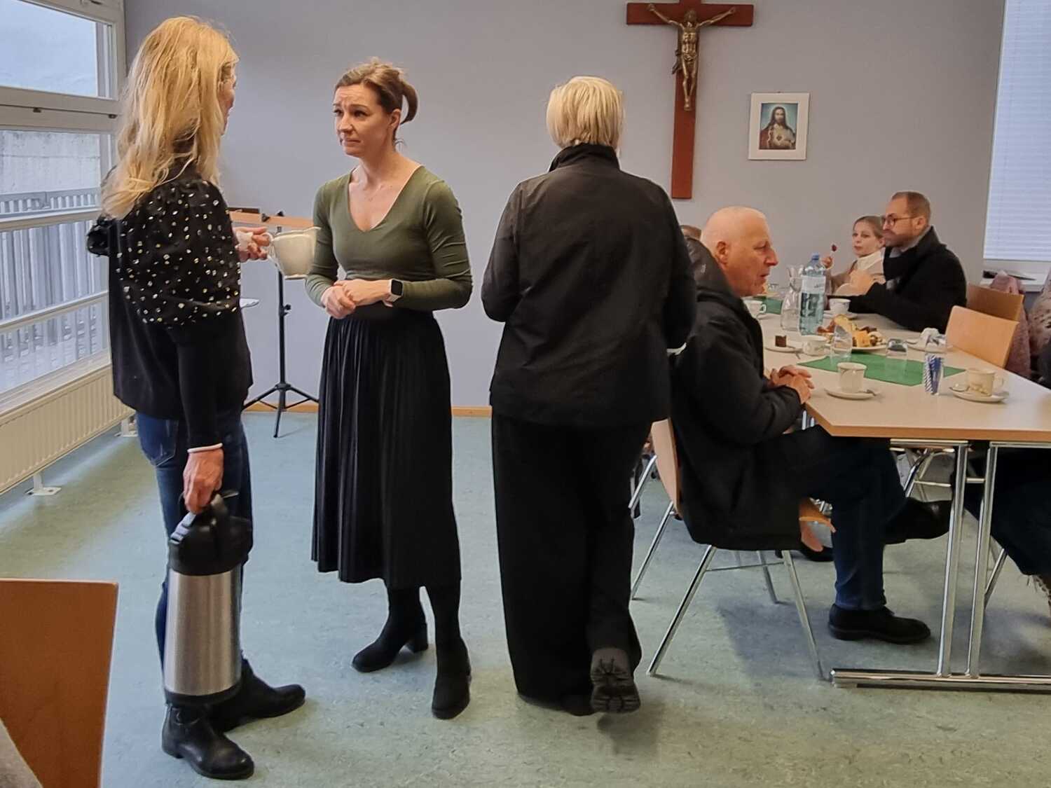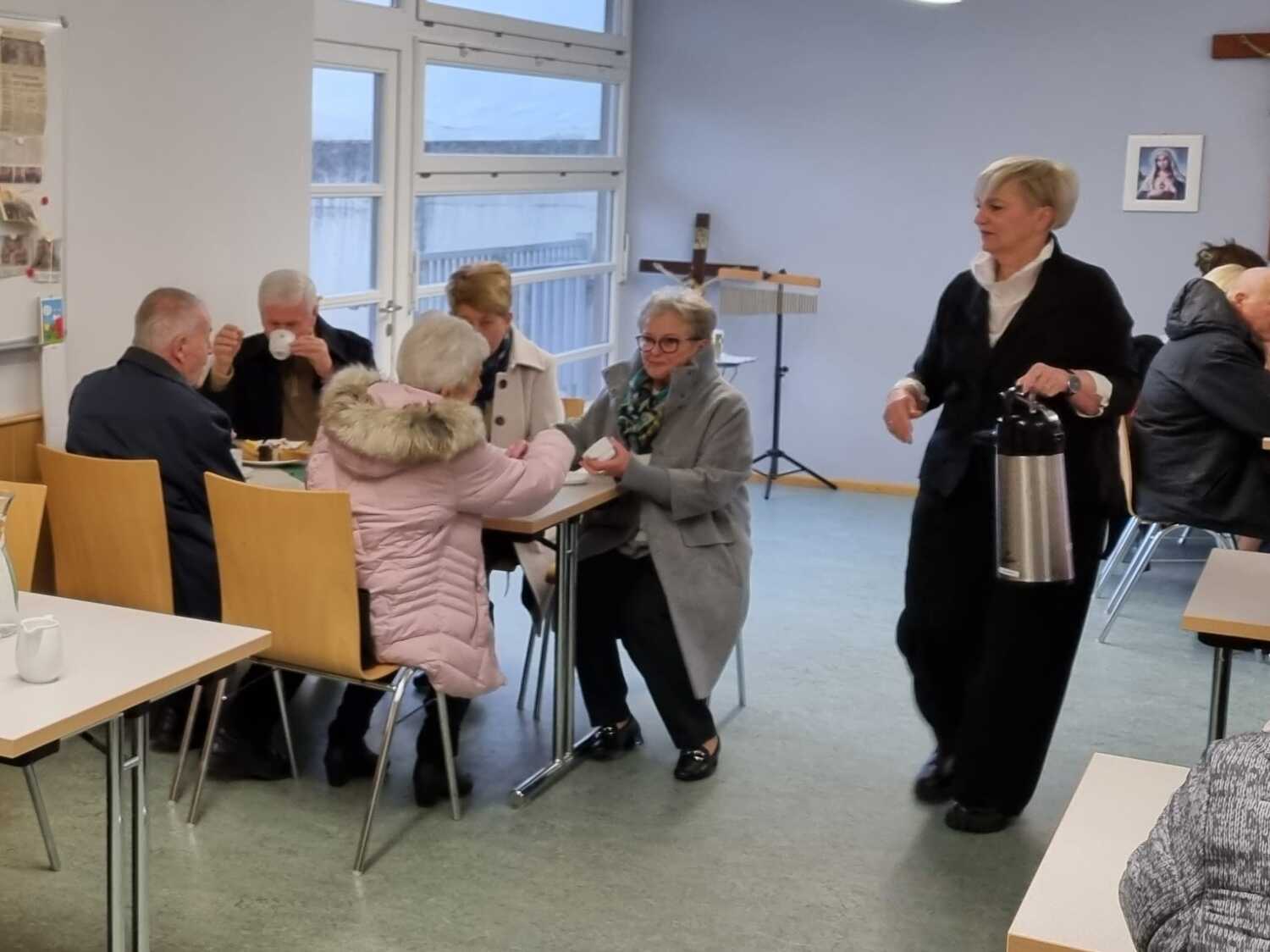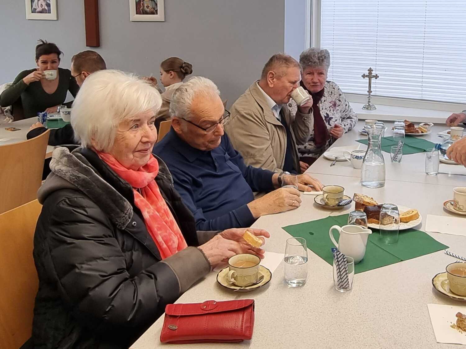 Köstliche Mehlspeisen und wärmender Kaffee lockten viele Menschen zum gemütlichen Zusammensein. Verschiedene Gespräche vertiefen das Gemeinschaftsgefühl und auch so manche neuen Kontakte können hergestellt werden.