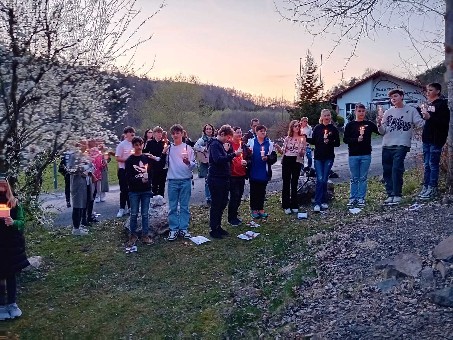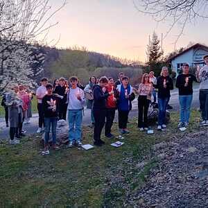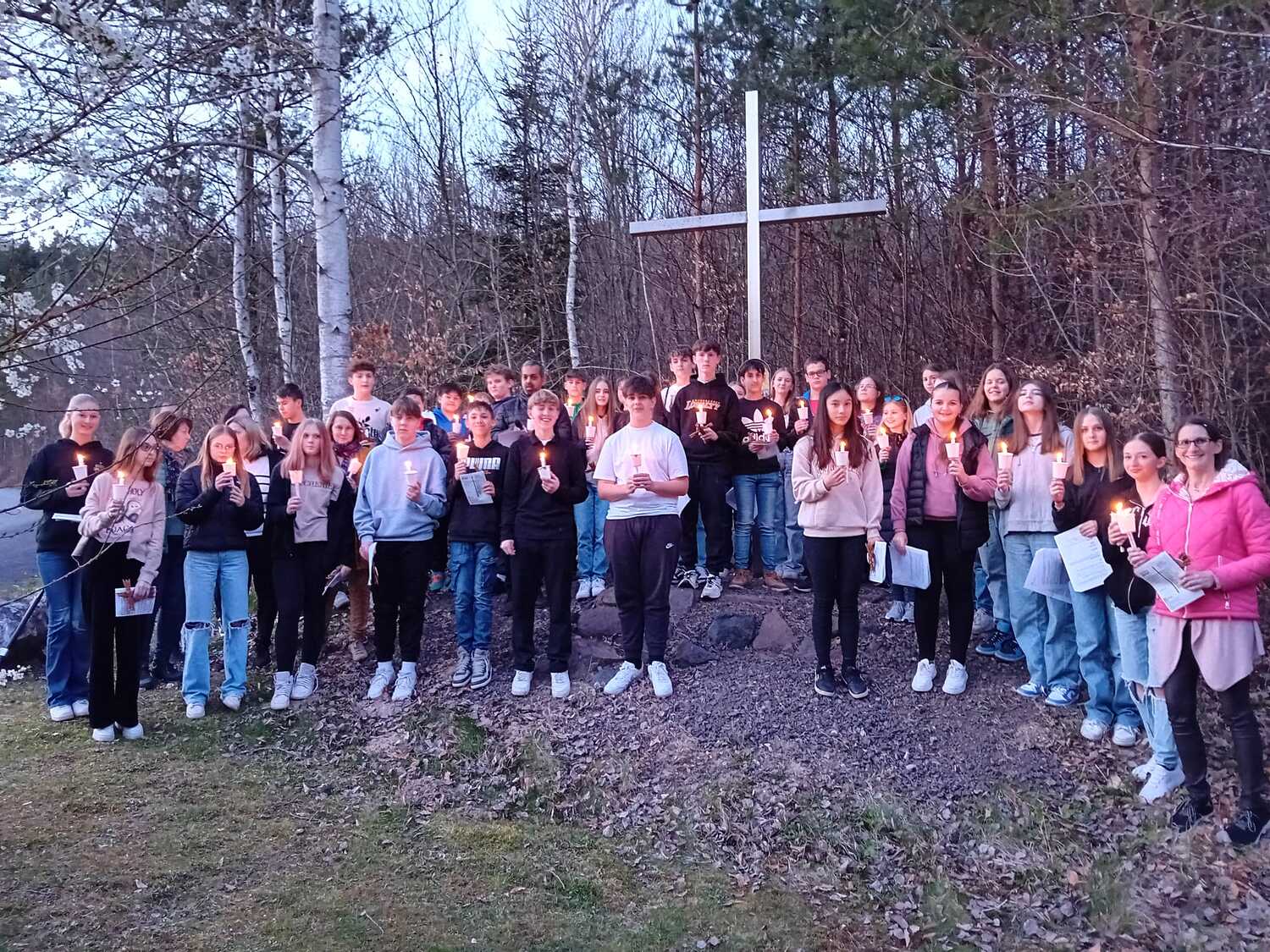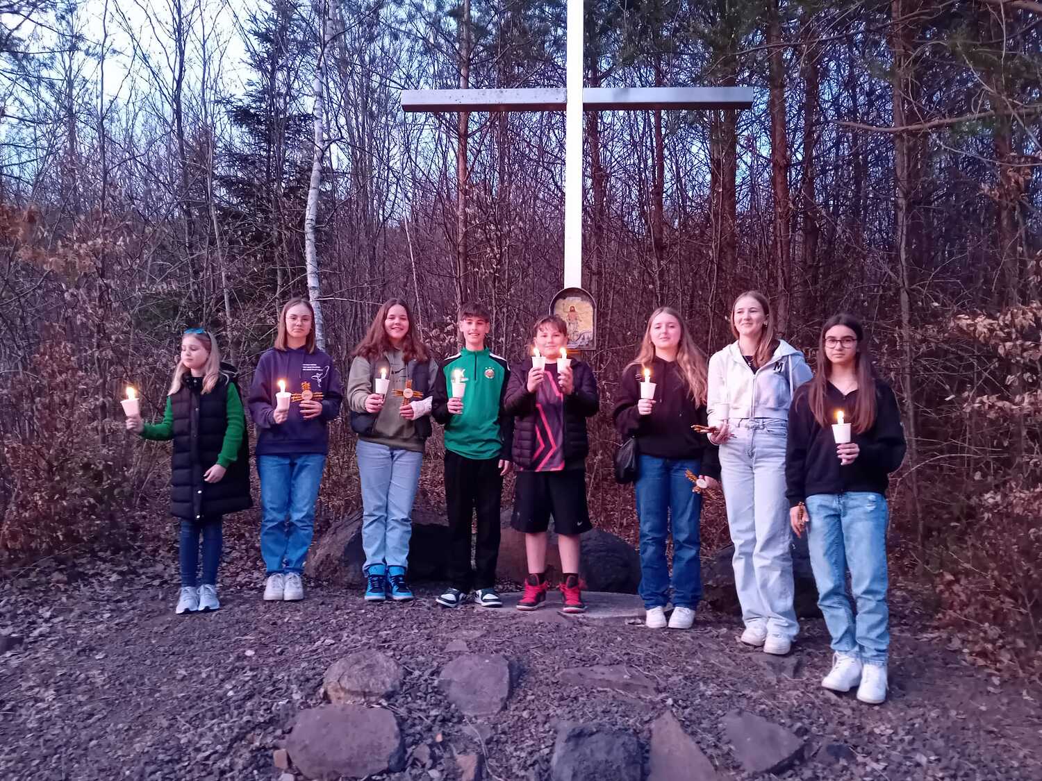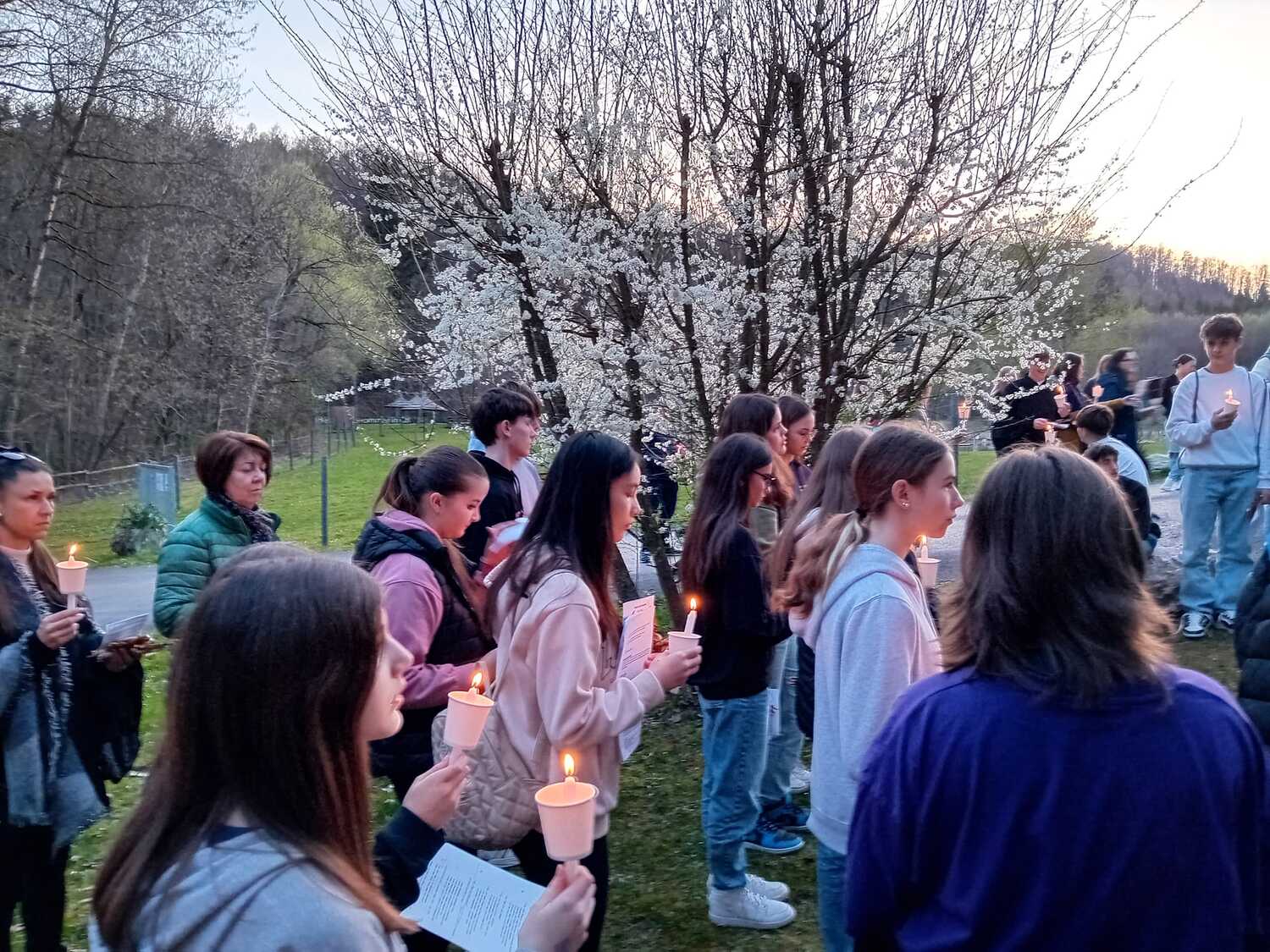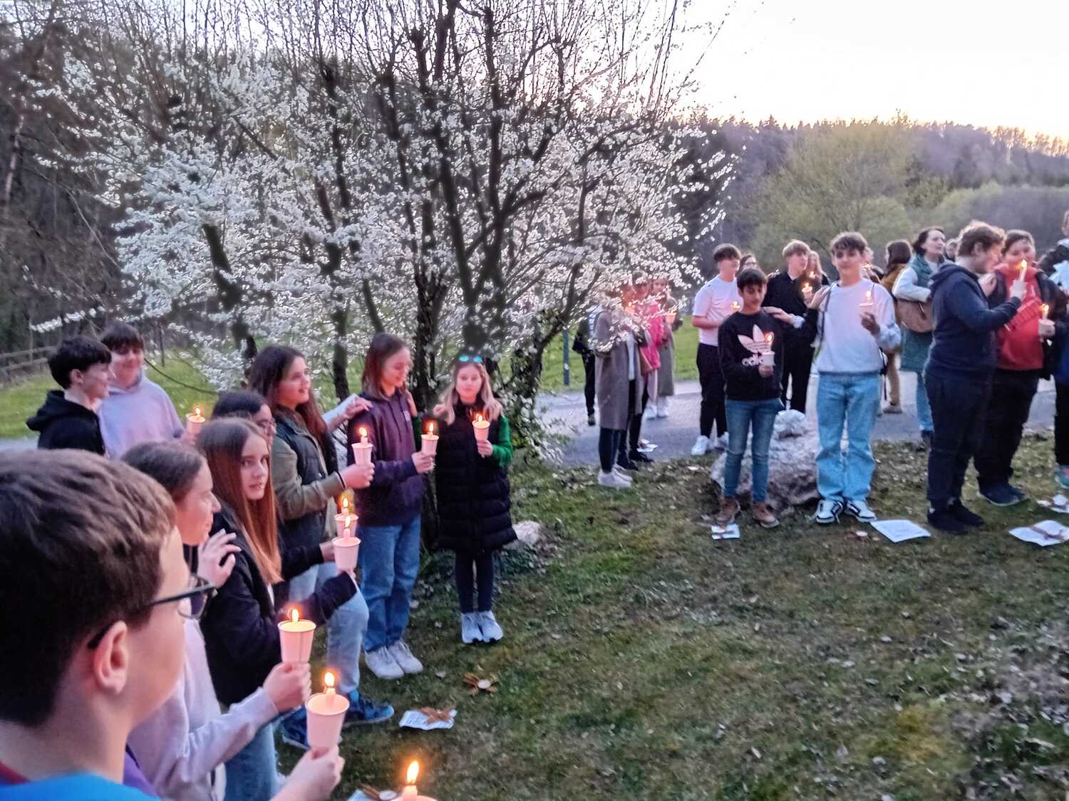 Ein sehr schöner, ruhiger, besinnlicher Kreuzweg mit den Firmlingen ging zu Ende, gestärkt im Glauben mit dem Gedanken „Der Herr lebt, er ist wahrhaftig auferstanden! Geht in alle Welt“.
