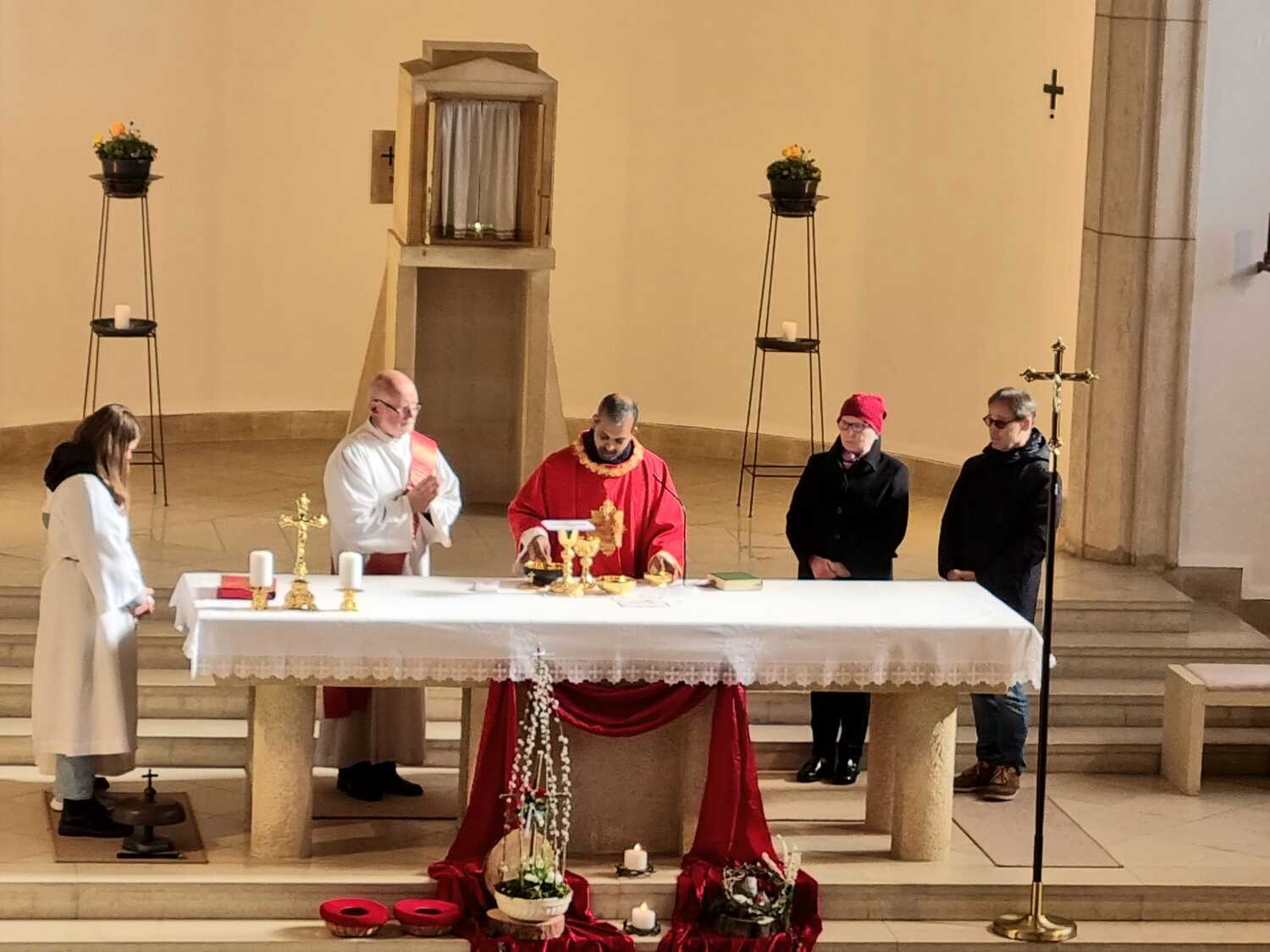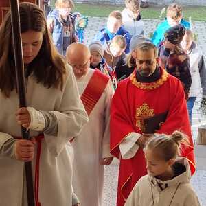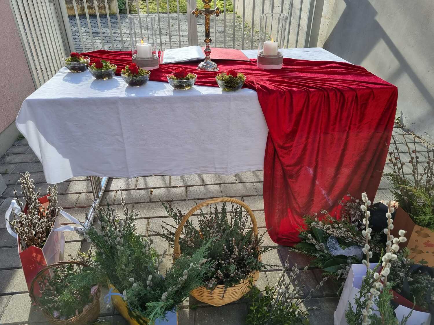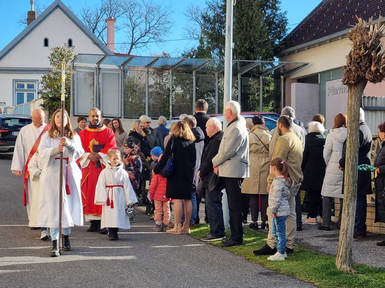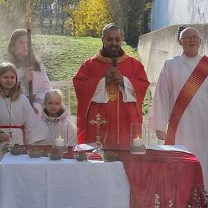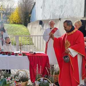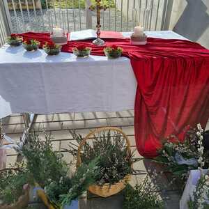 Zur Feier der Liturgie zum Palmsonntag mit Segnung der Palmbuschen trafen sich die Gläubigen der Pfarre Lackenbach vor dem Pfarrheim und zogen in einer kurzen Prozession in die Kirche ein, wo dann gemeinsam Messe gefeiert wurde.
