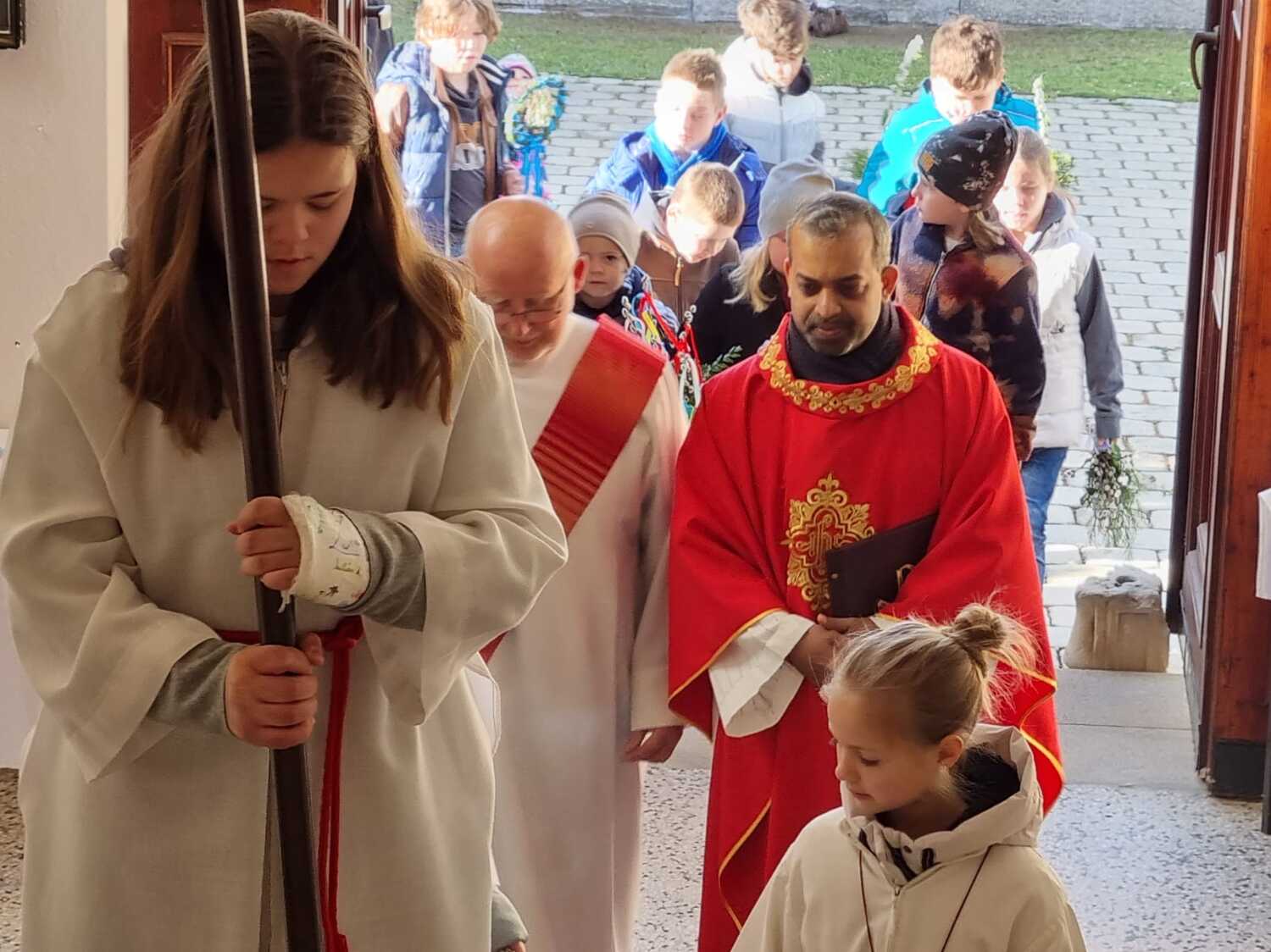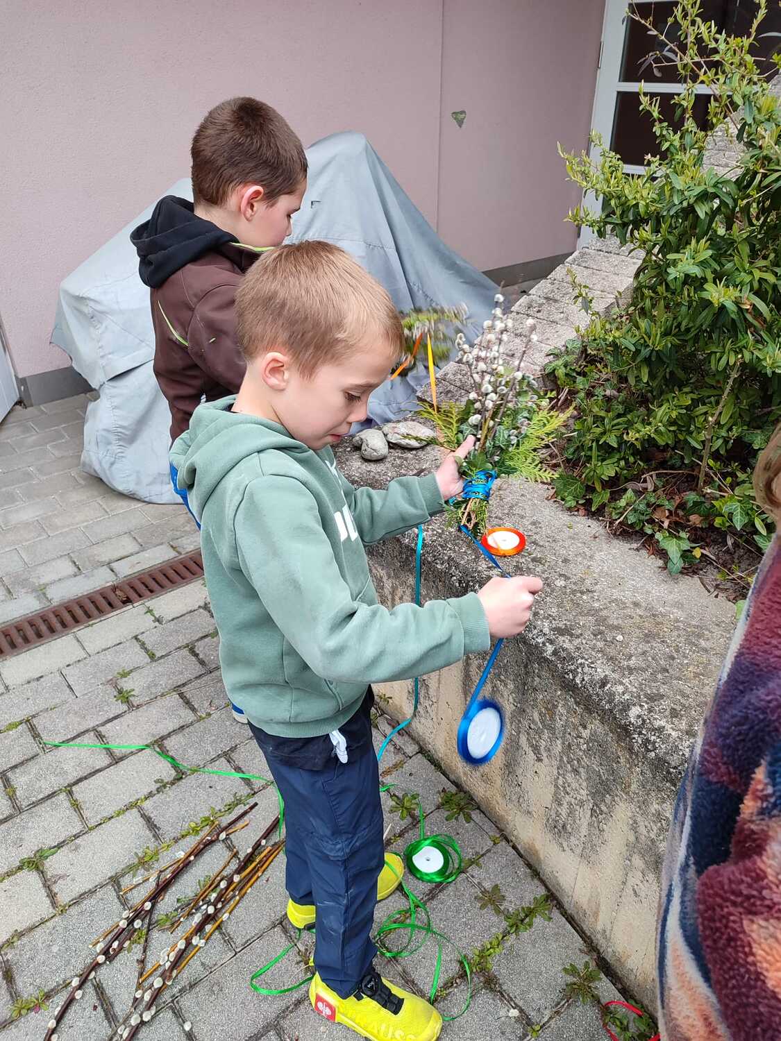Die Palmbuschen, die von den Kindern in die Kirche getragen wurden, wurden ein paar Tage davor gemeinsam im Pfarrheim gebunden. Die Freude darüber war den Kindern ins Gesicht geschrieben.