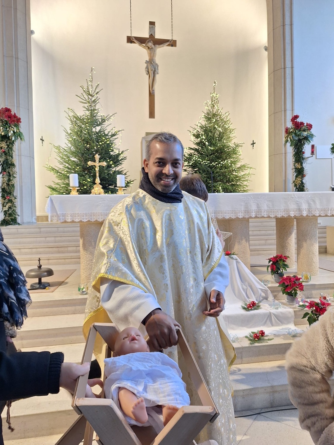 Nach der Begrüßung von Pfarrer Shinto ließen die Kinder die Weihnachtsgeschichte zum Leben erwecken. Zwischendurch konnten wir einige Weihnachtslieder hören, die uns von Clara und Kati mit ihren einmaligen Stimmen präsentiert wurden. Im Schein des Christbaumes wurde dann als Abschluss gemeinsam das Lied „Stille Nacht“ gesungen.