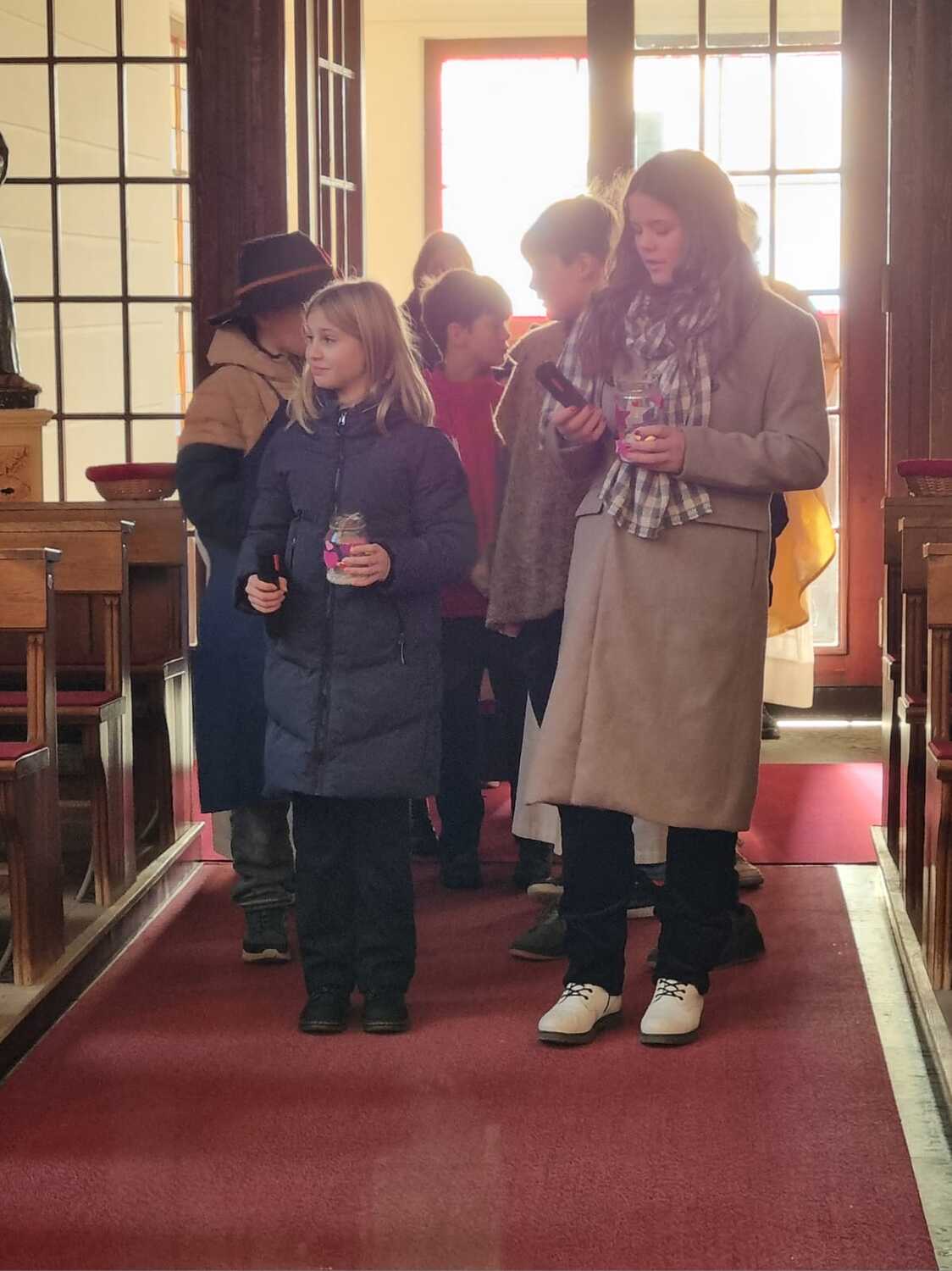 Mit dem Lied „Zünd ein Licht an“ sind die Kinder mit ihren selbstgebastelten Lichtern von hinten in das Gotteshaus eingezogen.