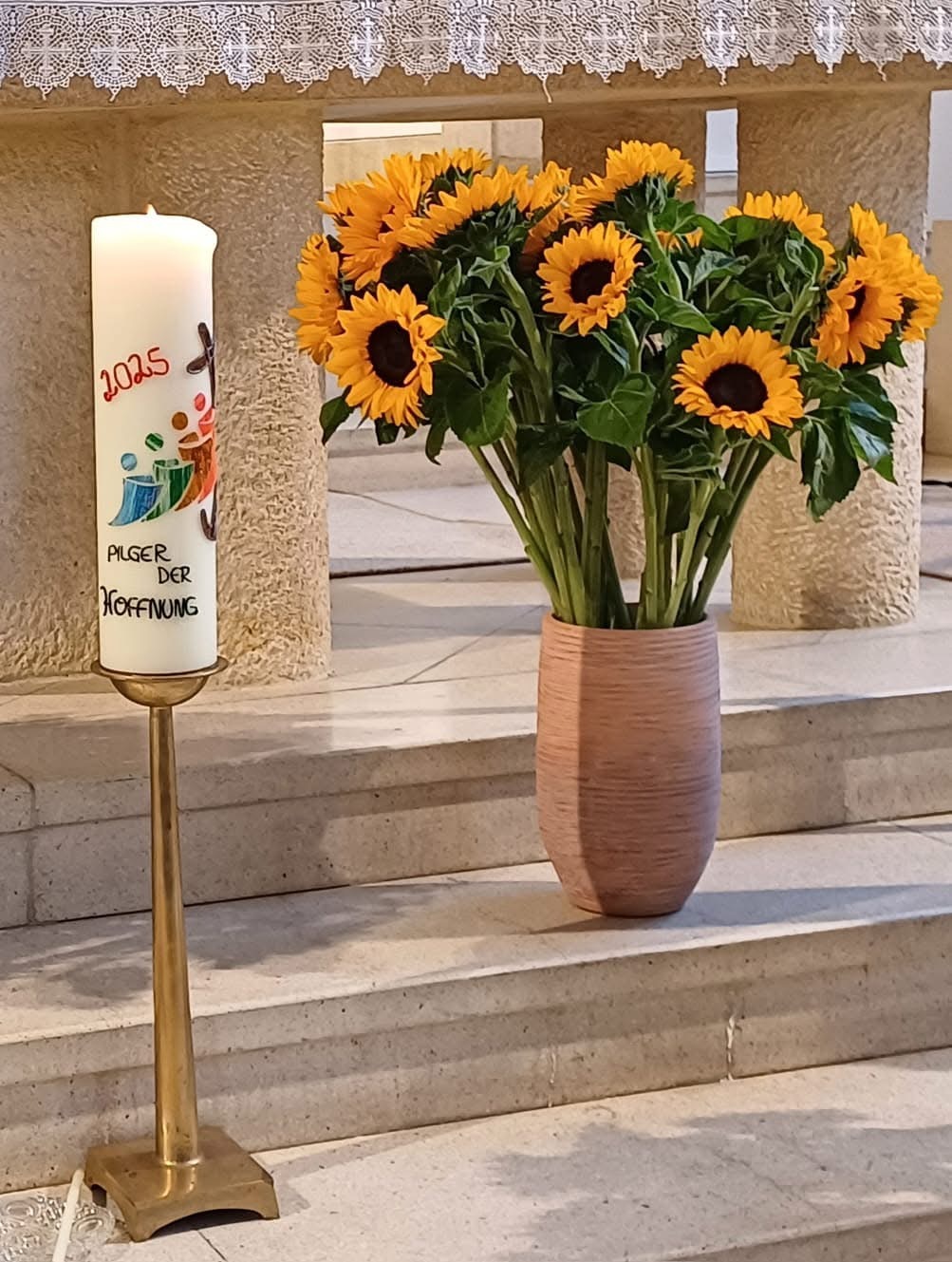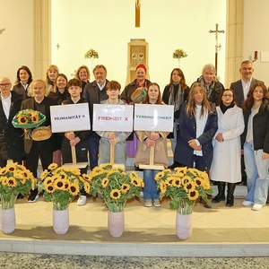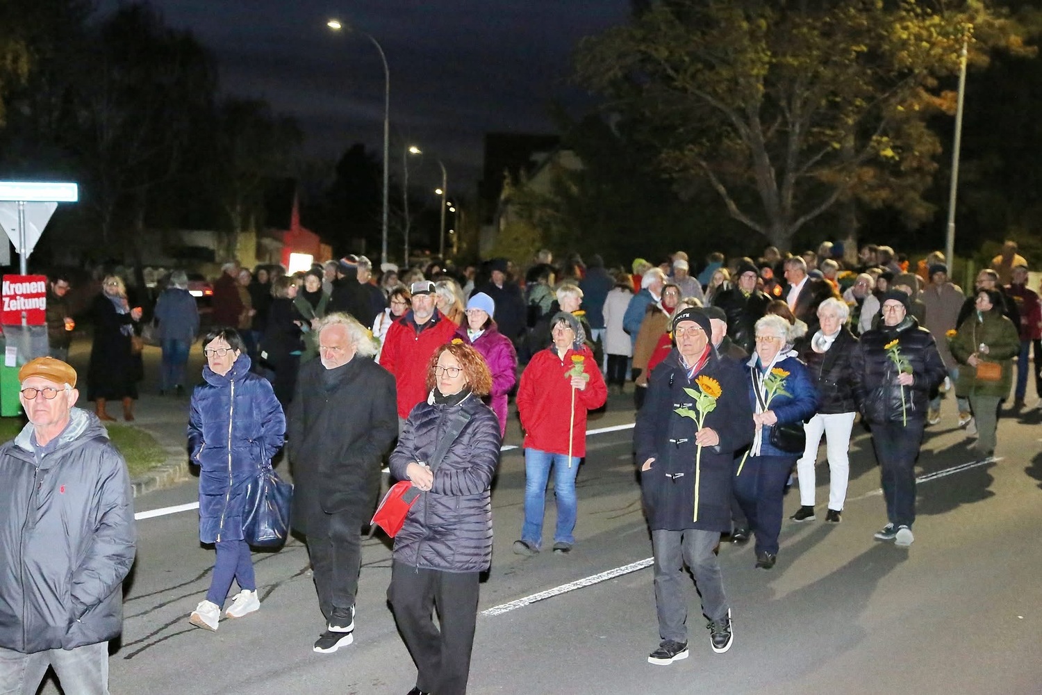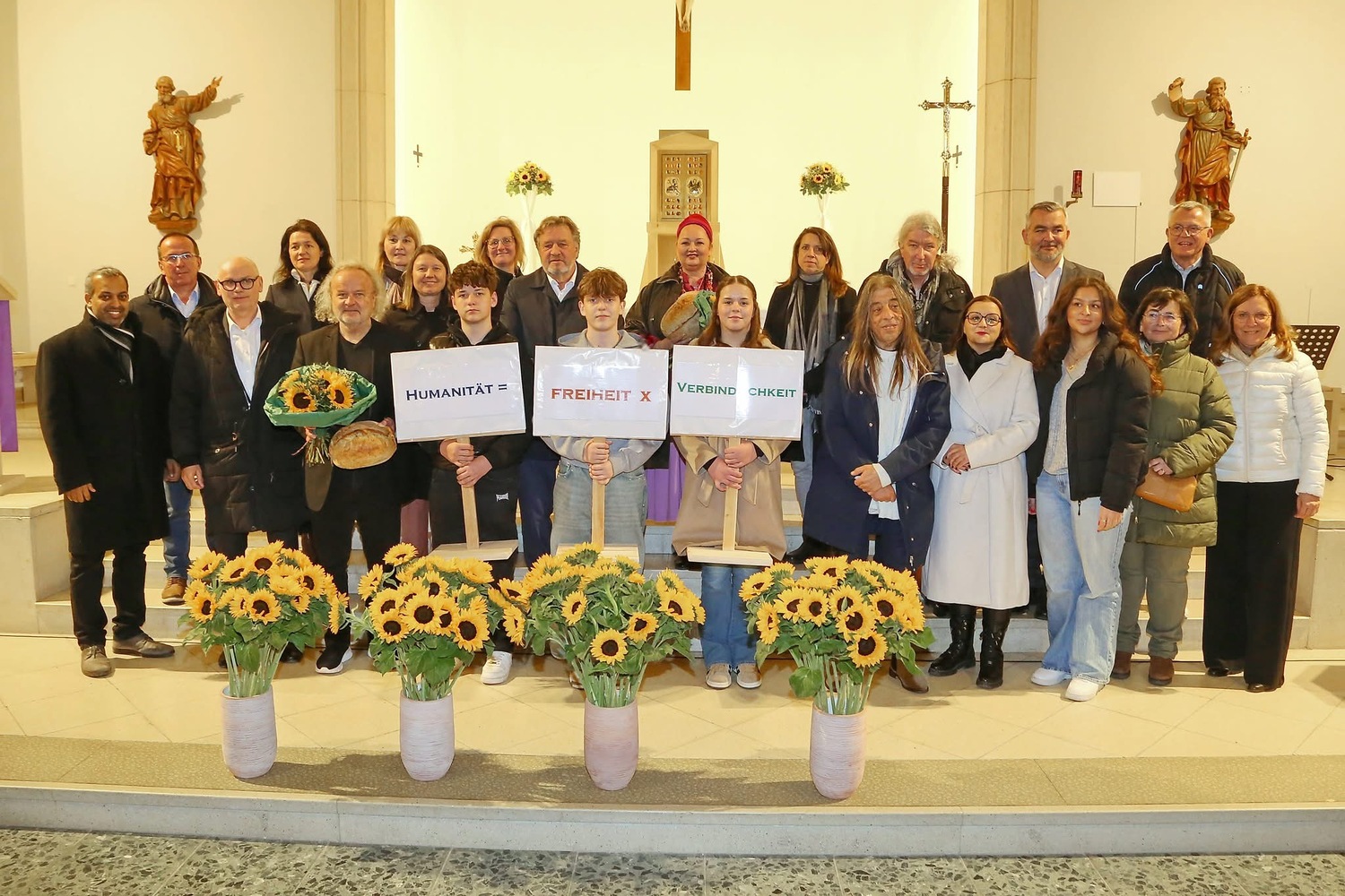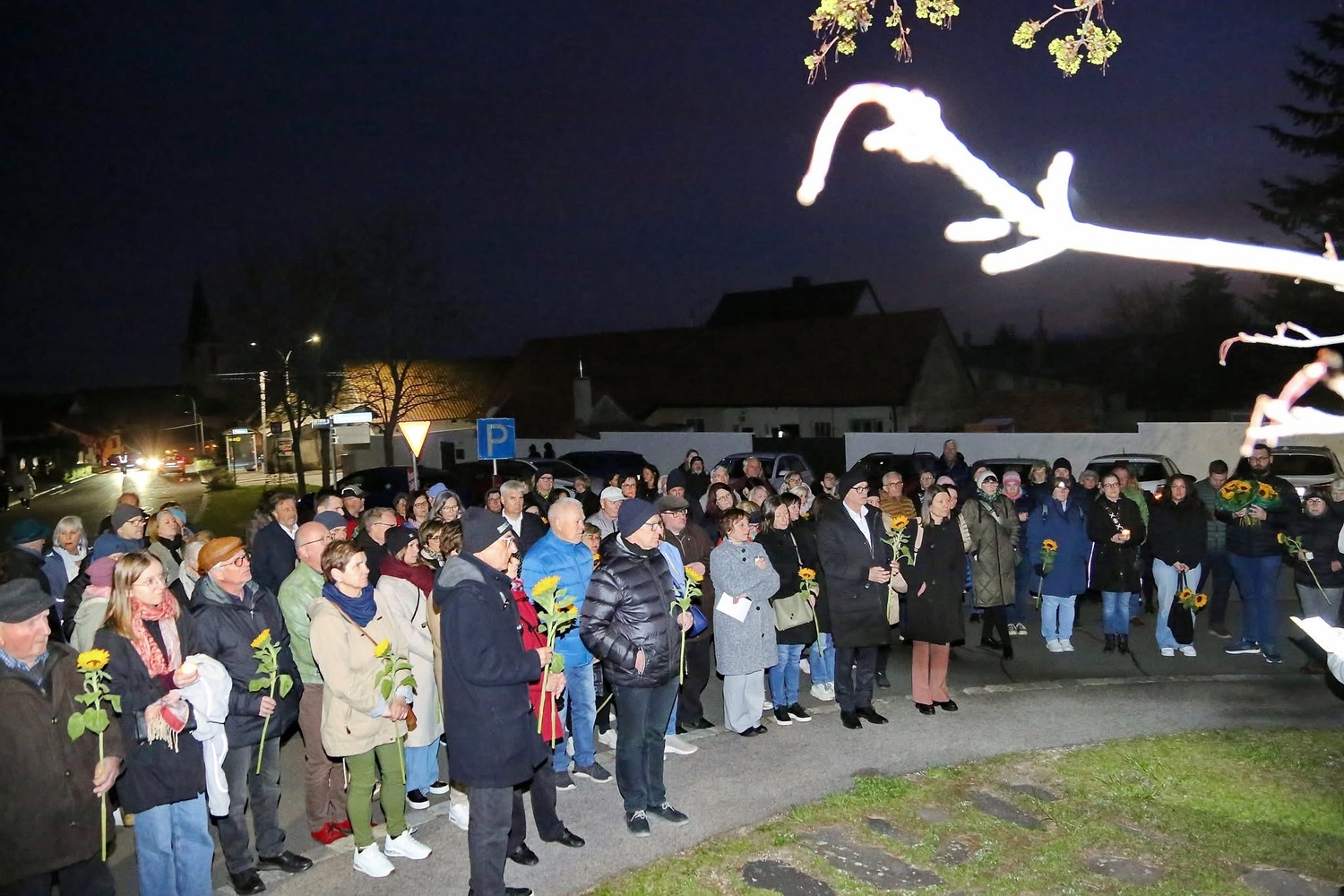 Nach dem Gebet in der Pfarrkirche zog ein stiller Lichterzug mit Kerzen und Sonnenblumen – als Symbole der Hoffnung und Erinnerung – durch den Ort.