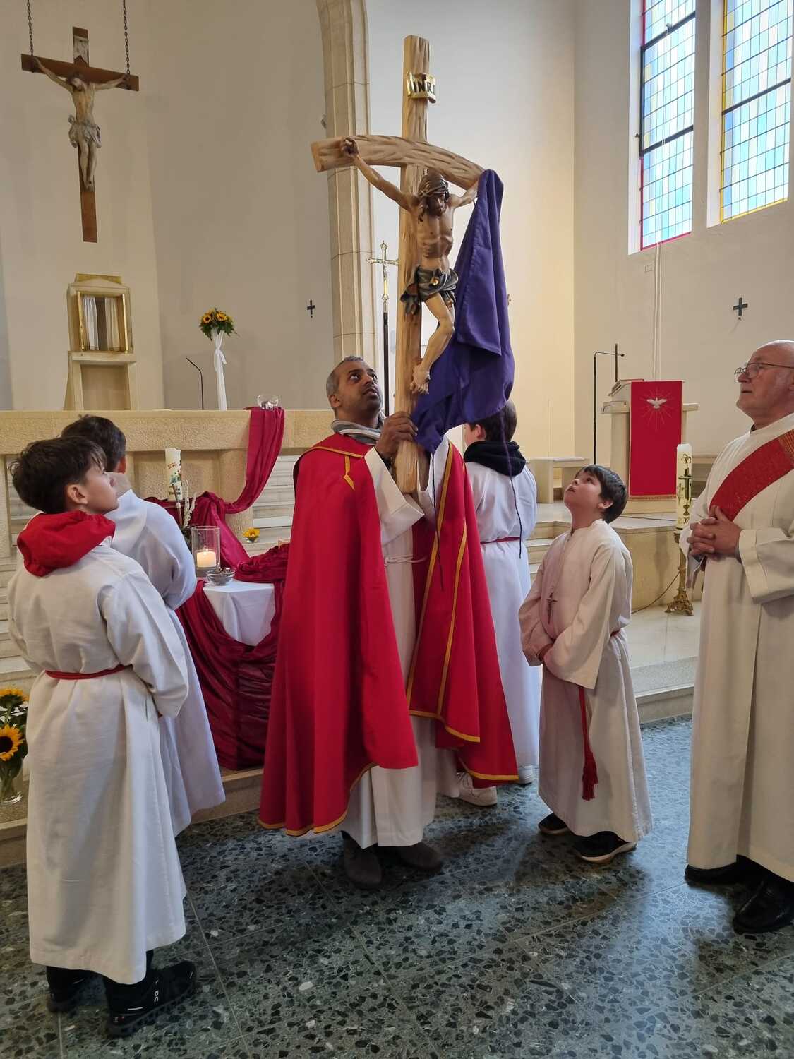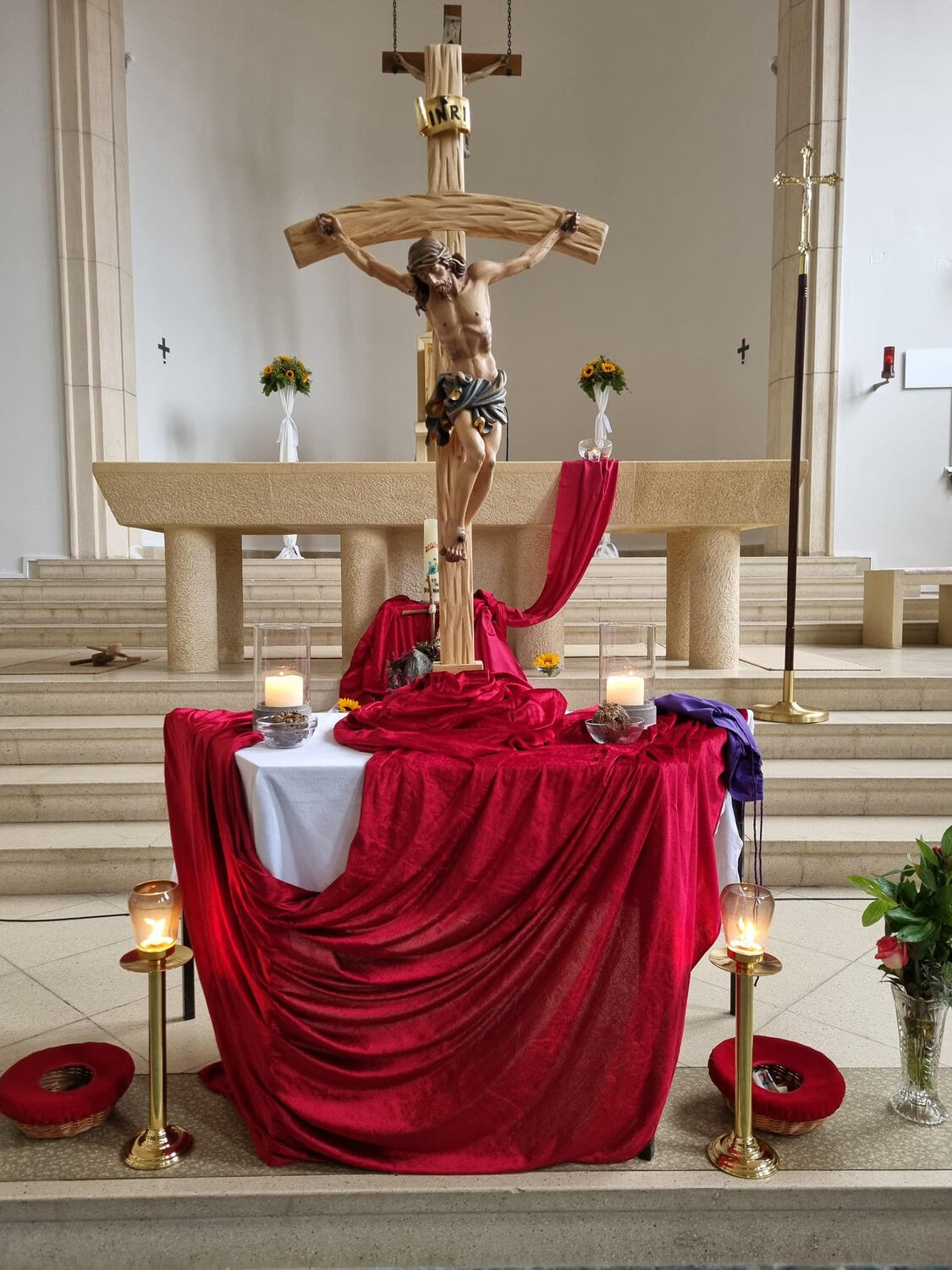 Am Karfreitag um 15 Uhr – der Todesstunde Jesu – wird in besonderer Form des Todes gedacht. Im Mittelpunkt steht die Kreuzverehrung sowie das Fürbittgebet für die Kirche und die ganze Welt.
