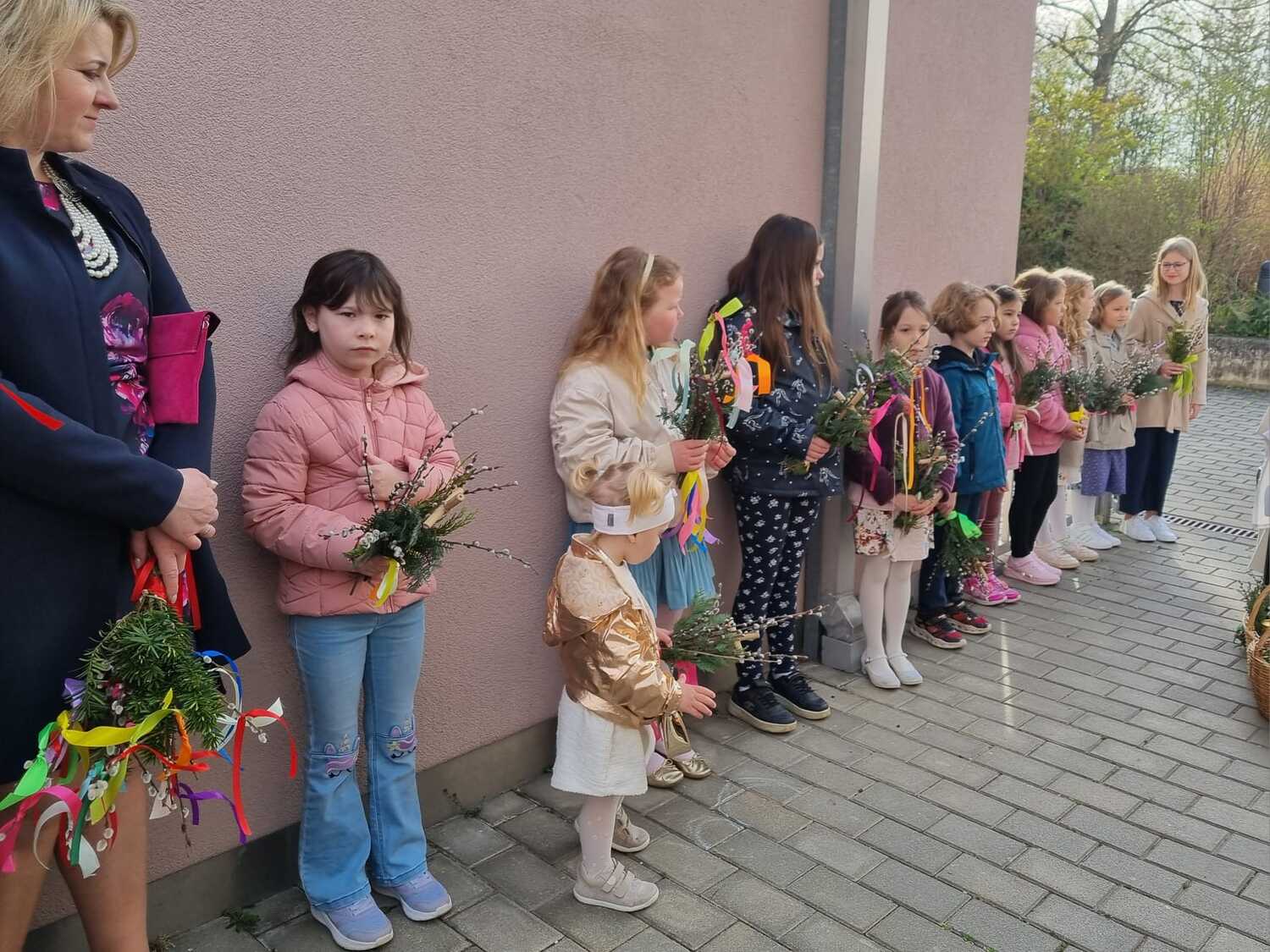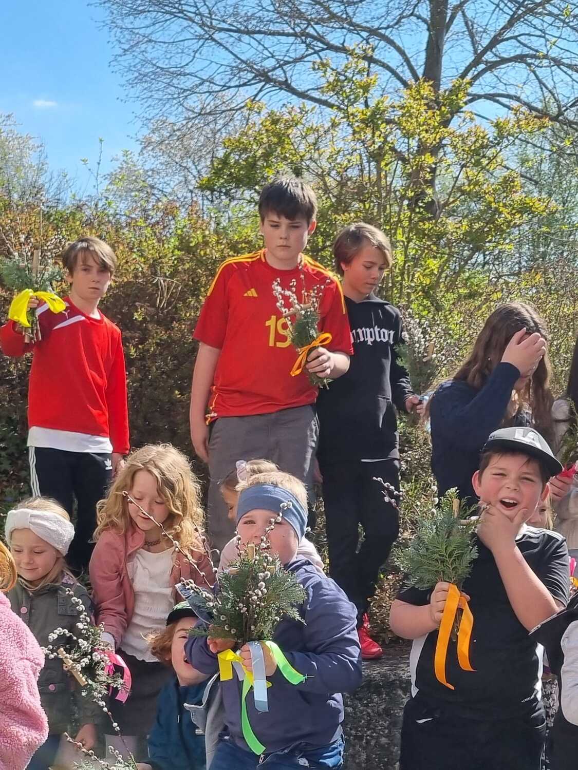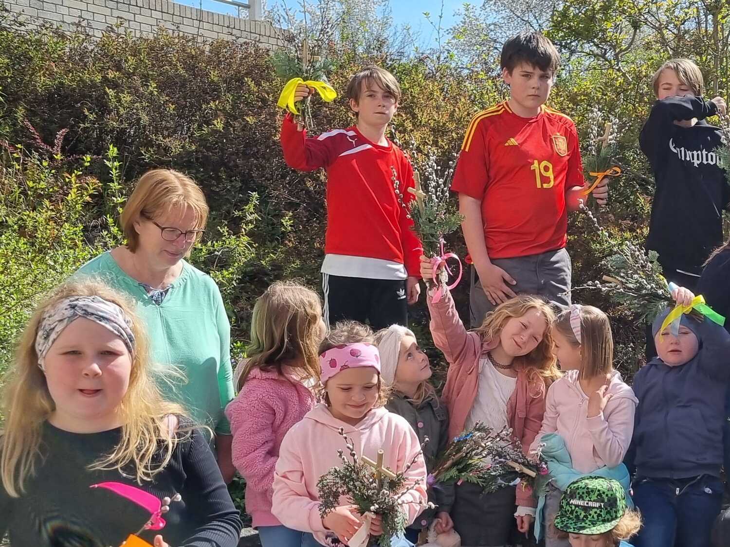 In der Woche vor Palmsonntag trafen sich die Kinder zum gemeinsamen Palmbuschenbinden. Diese werden am Palmsonntag gesegnet und sind ein Zeichen des Lebens und des Sieges über den Tod.