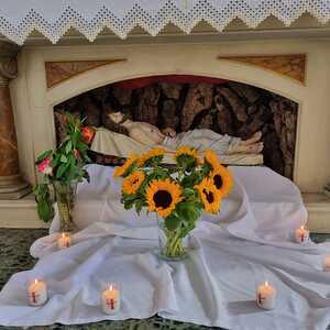In der Osternacht bricht die Stille durch den erlösenden Ruf, dass Christus als das Licht der Welt immer gegenwärtig ist. Der Stein am Eingang des Grabes ist weg, das Grab ist leer – ER LEBT!