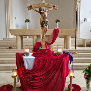 Am Gründonnerstag gedenken wir beim feierlichen Gottesdienst zum letzten Abendmahl der Einsetzung der Eucharistie. In der Fußwaschung zeigen wir die dienende Liebe, wie es uns Jesus vorgemacht hat.