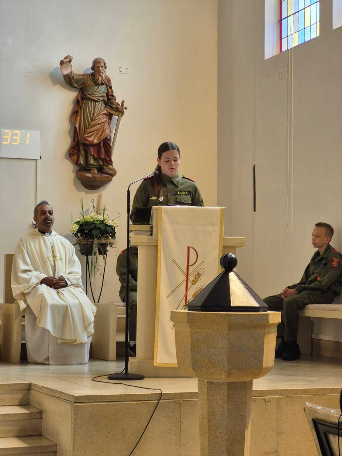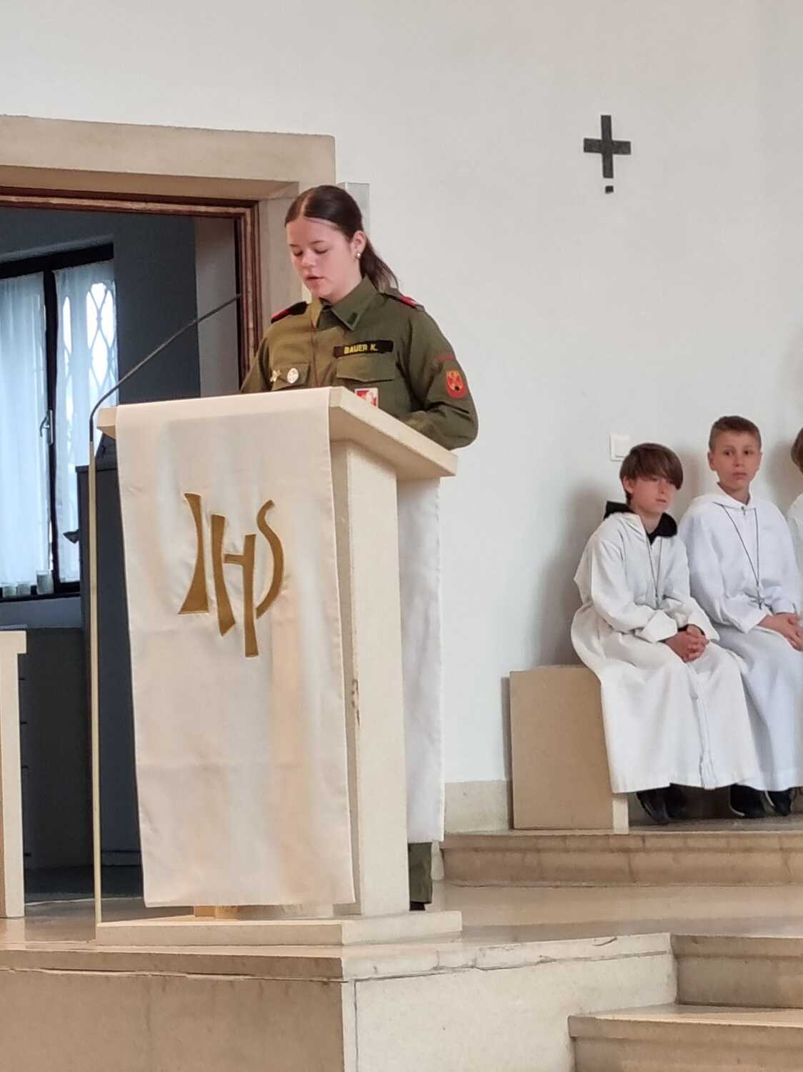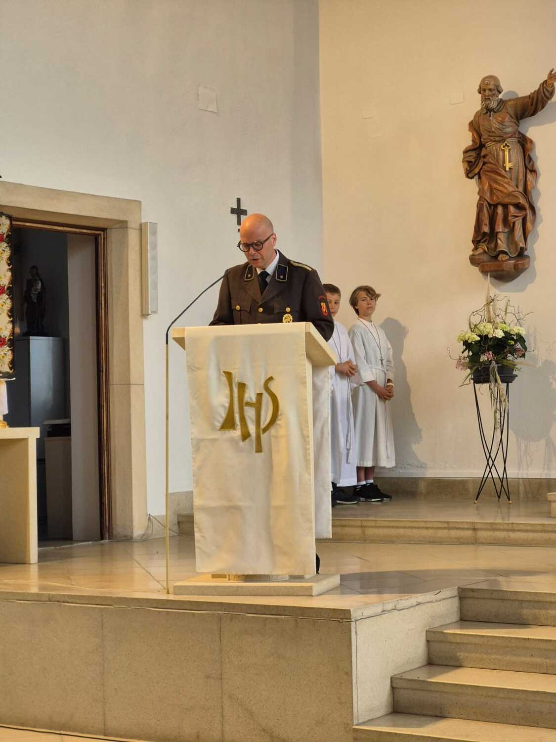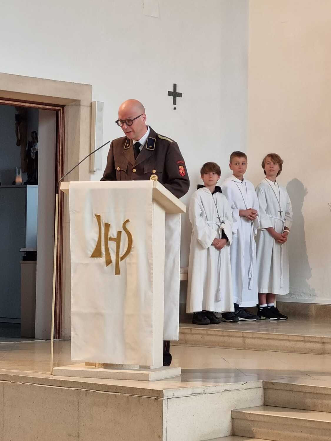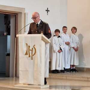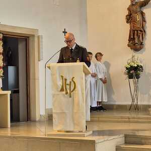 Die Feuerwehr Lackenbach findet sich aber nicht nur rund um den 04. Mai in der Kirche ein, sondern begleitet auch die Fronleichnams- und Allerheiligenprozession in der Pfarrgemeinde. Die Mitglieder*innen übernehmen dabei auch immer sehr gerne die Lektorendienste und sind somit noch aktiver in den Messablauf eingebunden, so wie auch in diesem Jahr am Tag der Feuerwehr, welchen 20 aktive und 8 Feuerwehrjugendmitglieder beiwohnten. Noch ein schöner Akt der Verbundenheit ist allerdings, dass einige Mitglieder der Feuerwehrjugend auch im Dienst als Ministrant*innen stehen und mit ihren Uniformen an diesem besonderen Tag ihre Arbeit beim Altar während der Messfeier verrichten durfen.
