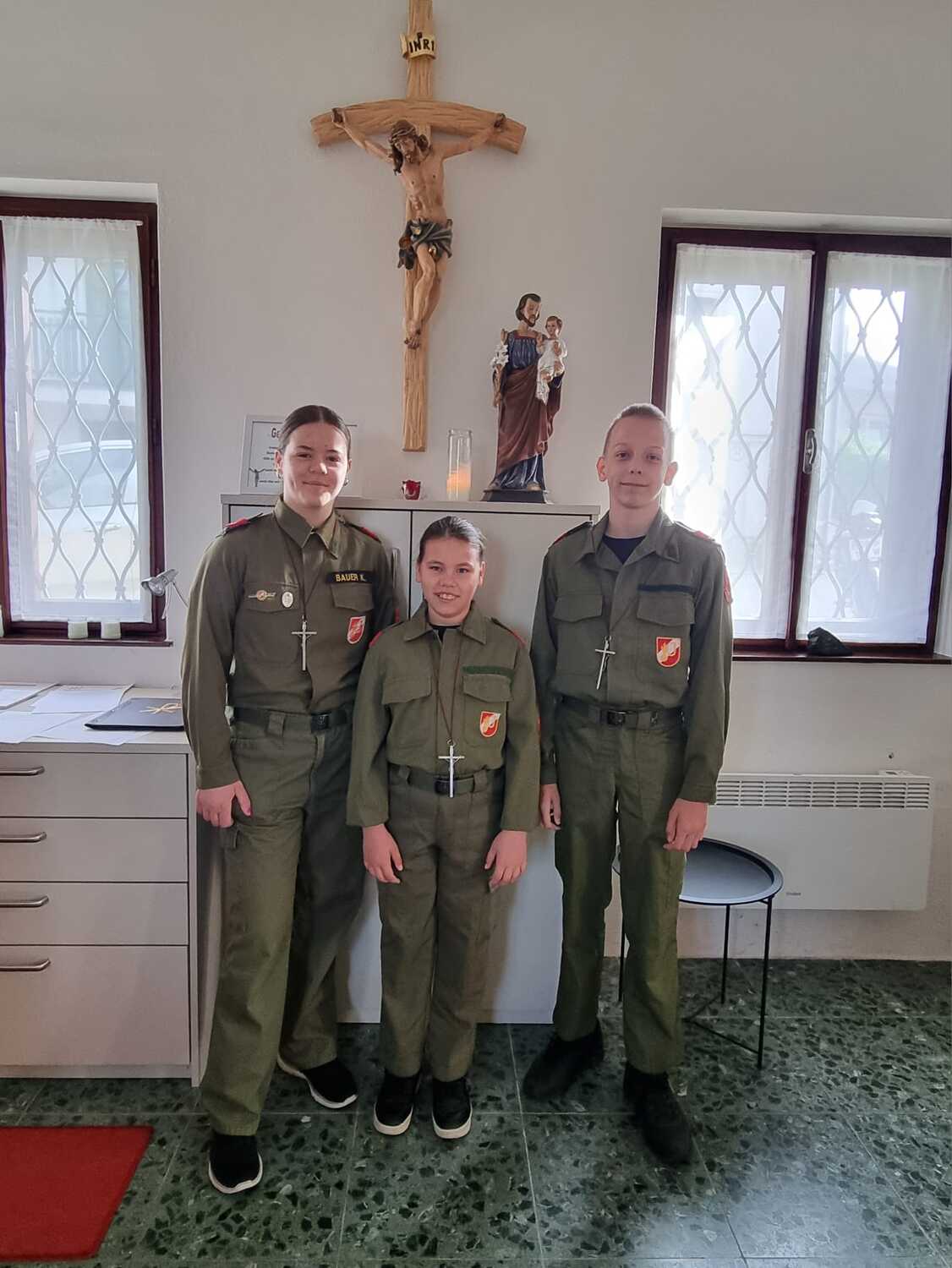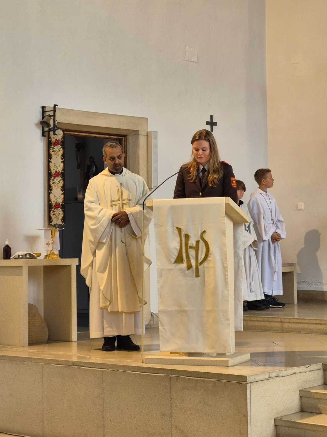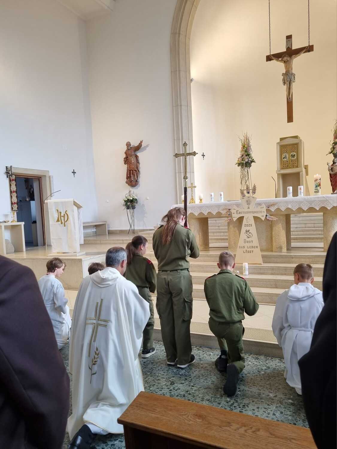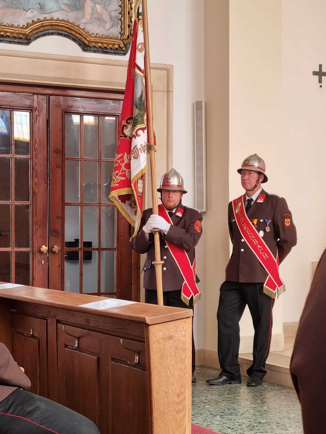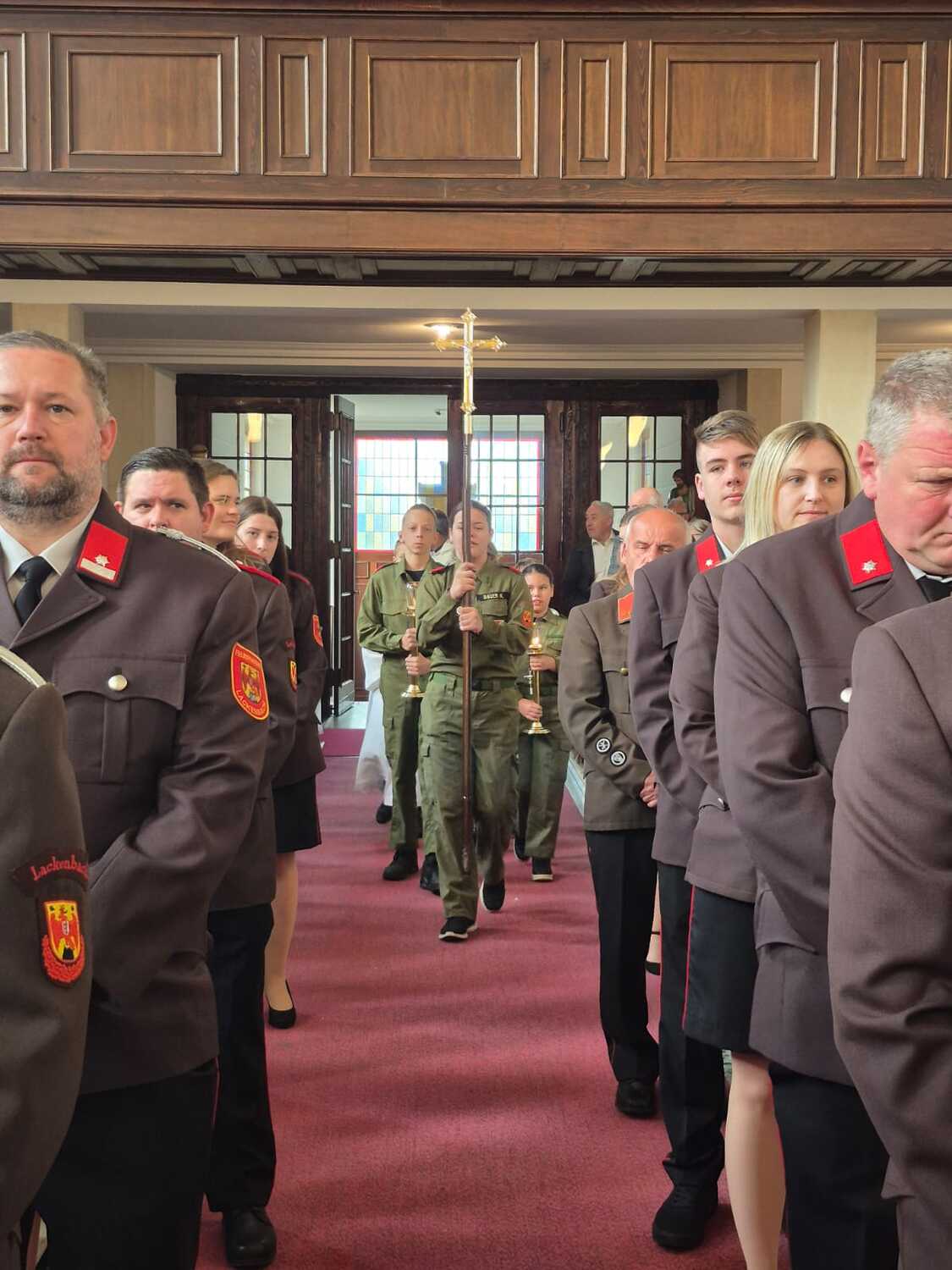Die Feuerwehr Lackenbach findet sich aber nicht nur rund um den 04. Mai in der Kirche ein, sondern begleitet auch die Fronleichnams- und Allerheiligenprozession in der Pfarrgemeinde. Die Mitglieder*innen übernehmen dabei auch immer sehr gerne die Lektorendienste und sind somit noch aktiver in den Messablauf eingebunden, so wie auch in diesem Jahr am Tag der Feuerwehr, welchen 20 aktive und 8 Feuerwehrjugendmitglieder beiwohnten. Noch ein schöner Akt der Verbundenheit ist allerdings, dass einige Mitglieder der Feuerwehrjugend auch im Dienst als Ministrant*innen stehen und mit ihren Uniformen an diesem besonderen Tag ihre Arbeit beim Altar während der Messfeier verrichten durfen.