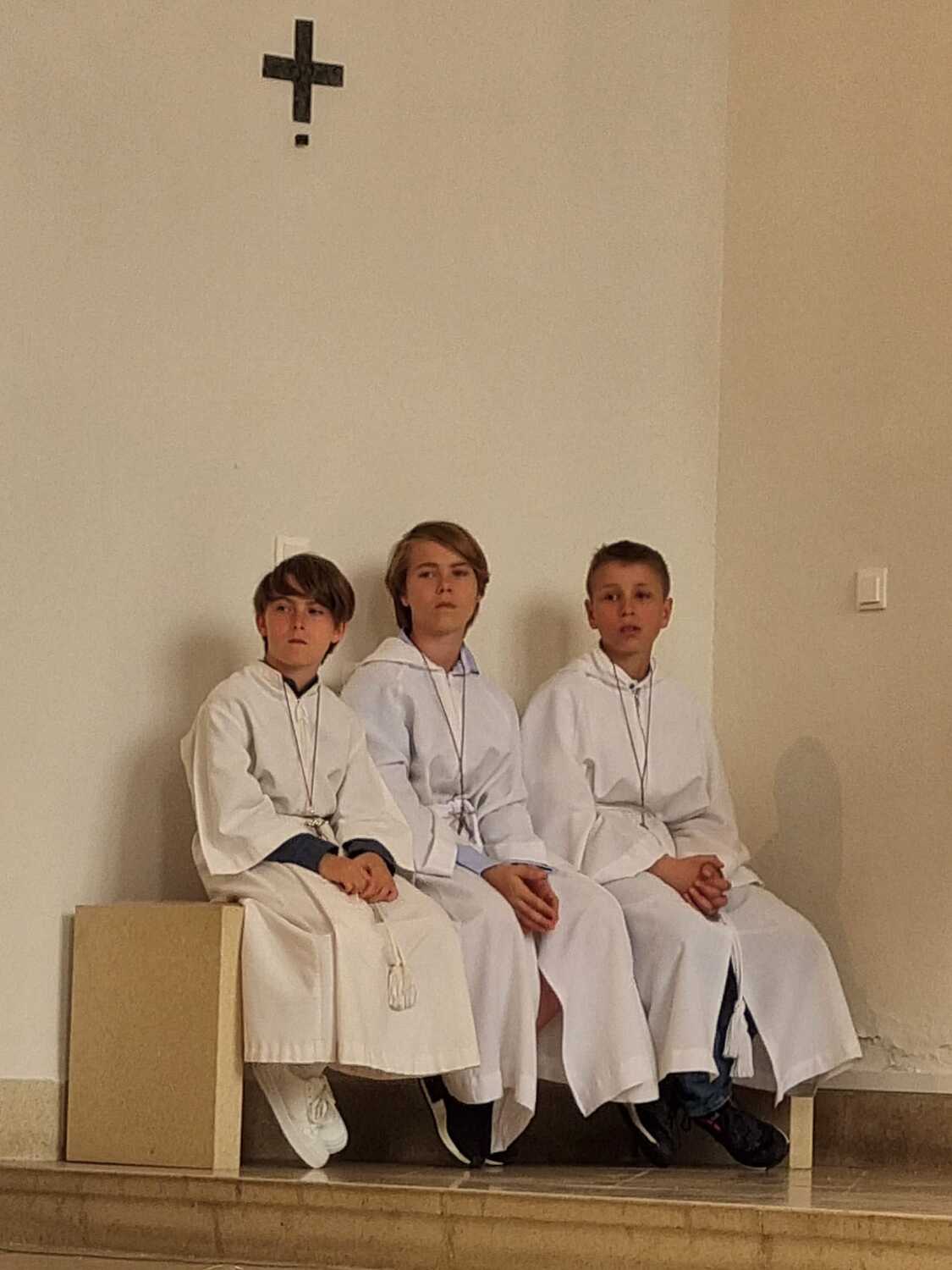 Gemeinsam mit ihren Müttern bereiteten sie sich voller Freude auf den großen Tag vor. Es wurden Palmbuschen gebunden, Brote gebacken und Kerzen gebastelt. Im Religionsunterricht erklärte ihnen Religionslehrerin Adele Grill die liturgischen Themen wie z.B. die Taufe, die Eucharistiefeier, die Beichte und die Nähe zu Gott. So oft es ging war unser lieber Herr Pfarrer Mag. Shinto Varghese Michael bei den Vorbereitungsstunden dabei, was für die Kinder ein besonderes Highlight war.