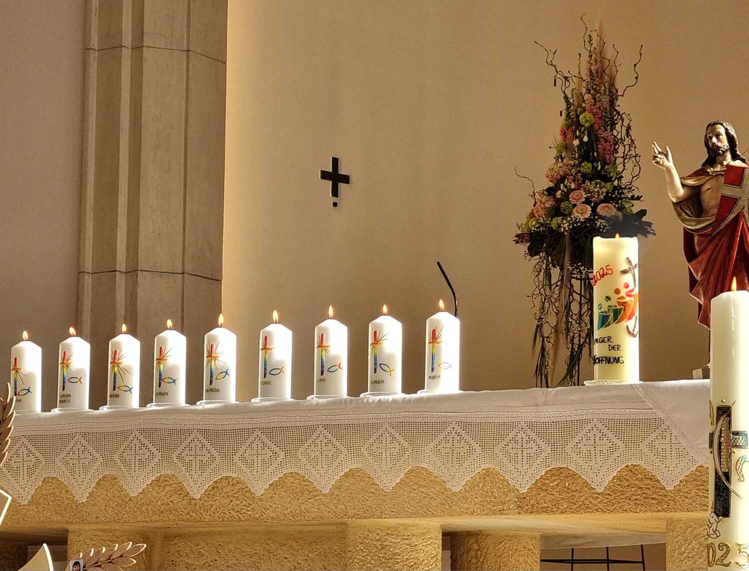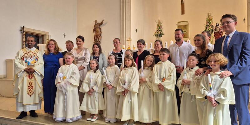 Im Rahmen eines feierlichen Gottesdienstes erneuerten die Erstkommunionkinder das Taufversprechen und empfingen zum ersten Mal die Heilige Kommunion, somit wurden sie in die Mahlgemeinschaft Jesu aufgenommen.