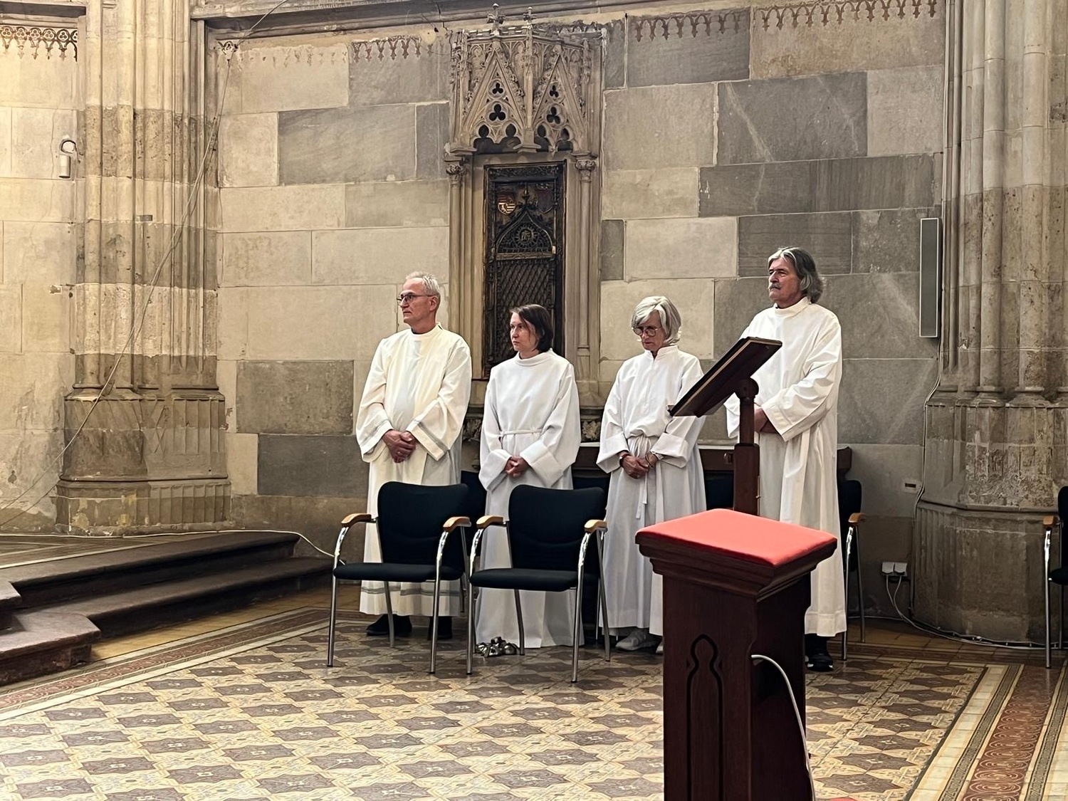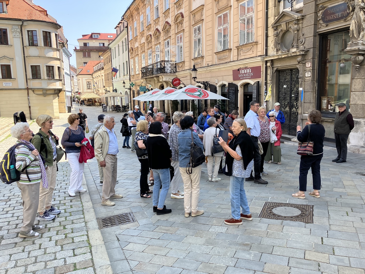 Um 10.00 Uhr feierten Dechant Shinto und Pfarrer Mück mit dem Pfarrverband einen feierlichen Gottesdienst im Martinsdom von Bratislava, welcher von Christa Reiner und mehreren Sängerinnen musikalisch gestaltet wurde. Nach einer Domführung startete – in 3 Gruppen – der erste Teil der Stadtführung. Besichtigt wurden u. a. die Venturgasse, die Michaelergasse mit dem Michaelertor, der Hauptplatz mit dem Alten Rathaus und dem Maximilianbrunnen sowie die Alte Oper. Ein Höhepunkt war die Außen- und Innenbesichtigung des Primatialpalastes.