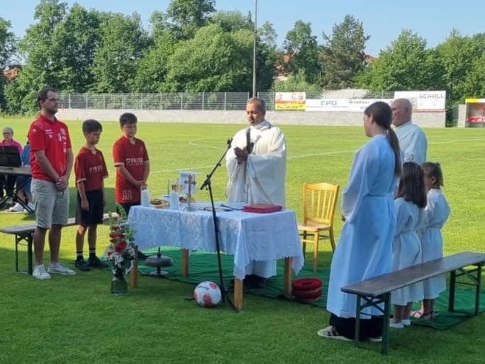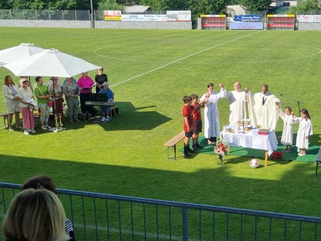 Ein ganz besonderer Moment im Rahmen der Jubiläumsfeierlichkeiten des Sportvereins war der festliche Gottesdienst unter freiem Himmel, der am Sonntag, dem 15. Juni auf dem Sportplatz stattfand. Zahlreiche Vereinsmitglieder, Gemeindemitglieder und Gäste kamen zusammen, um gemeinsam 100 Jahre Vereinsgeschichte mit einem Dankgottesdienst zu feiern.