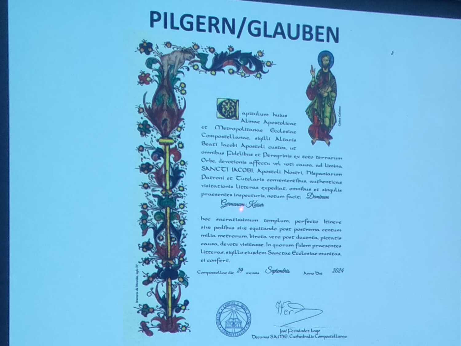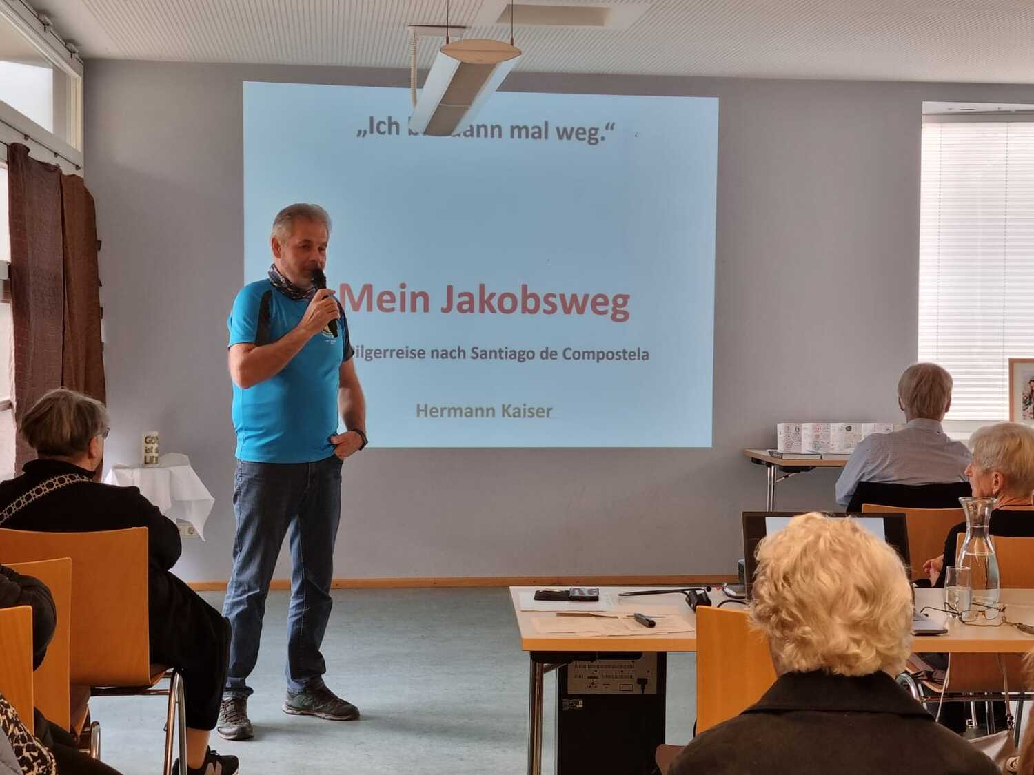 Viele interessierte Zuhörer:innen waren gekommen, um seinen persönlichen Erfahrungen, Herausforderungen und spirituellen Eindrücken zu lauschen. Der Vortrag gab nicht nur Einblick in die körperlichen und logistischen Aspekte einer solchen Pilgerreise, sondern auch in die inneren Beweggründe und Erkenntnisse, die Hermann unterwegs gesammelt hat.