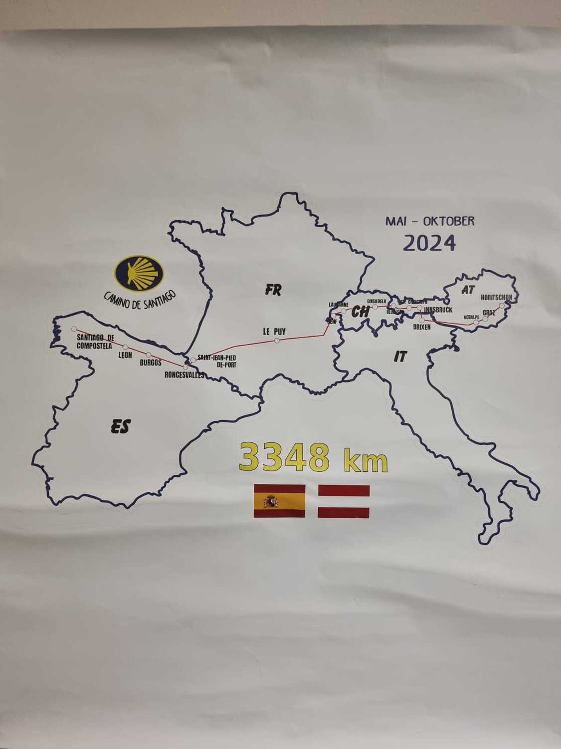 Unter dem Titel „Mein Jakobsweg“ erzählte er von seiner Wanderung, die am 6. Mai mit dem Pilgersegen in Horitschon begann und ihn nach 3.348 Kilometern bis nach Santiago de Compostela führte.