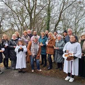 Zum Abschluss der Messe erhielt jede/r Gottesdienstbesucher:in ein Lebkuchenherz als kleines Dankeschön. Anschließend lud eine kleine Agape am Kirchenplatz dazu ein, noch miteinander ins Gespräch zu kommen und die Freude dieses besonderen Adventsonntags weiterzutragen.