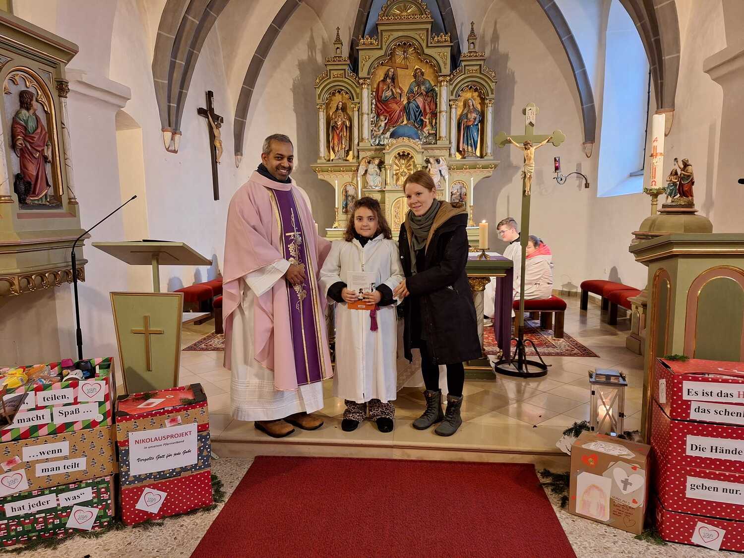 Im Rahmen des Nikolausprojektes „Teilen, teilen – das macht Spaß“ haben in den vergangenen Wochen viele Kinder, Familien und Pfarrmitglieder des gesamten Pfarrverbandes mit großem Engagement Geschenke gesammelt. Diese Gaben wurden im Gottesdienst gesegnet und im Anschluss feierlich an die Gäste übergeben – als sichtbares Zeichen der Verbundenheit, der Wertschätzung und der christlichen Nächstenliebe.