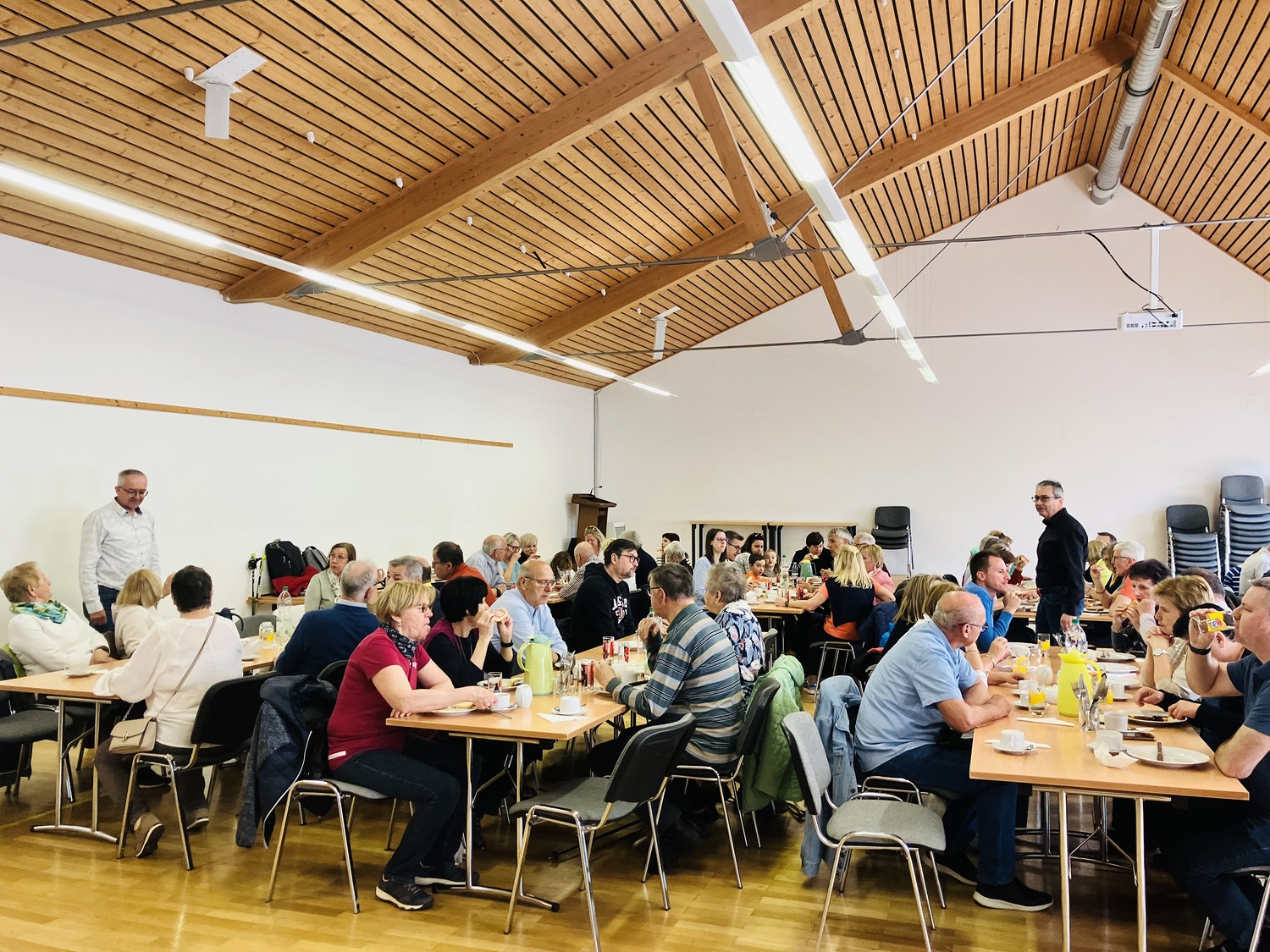 Das Ziel vor Augen, kamen die verschiedenen Gruppen aus allen Richtungen in Lindgraben an. Dort wartete bereits die erste Belohnung auf die tüchtigen Wanderer: Ein ausgiebiges Frühstück in geselliger Runde. Bei frischem Kaffee und einer kräftigen Stärkung wurde gelacht, erzählt und die Gemeinschaft zwischen den Pfarren spürbar gelebt.