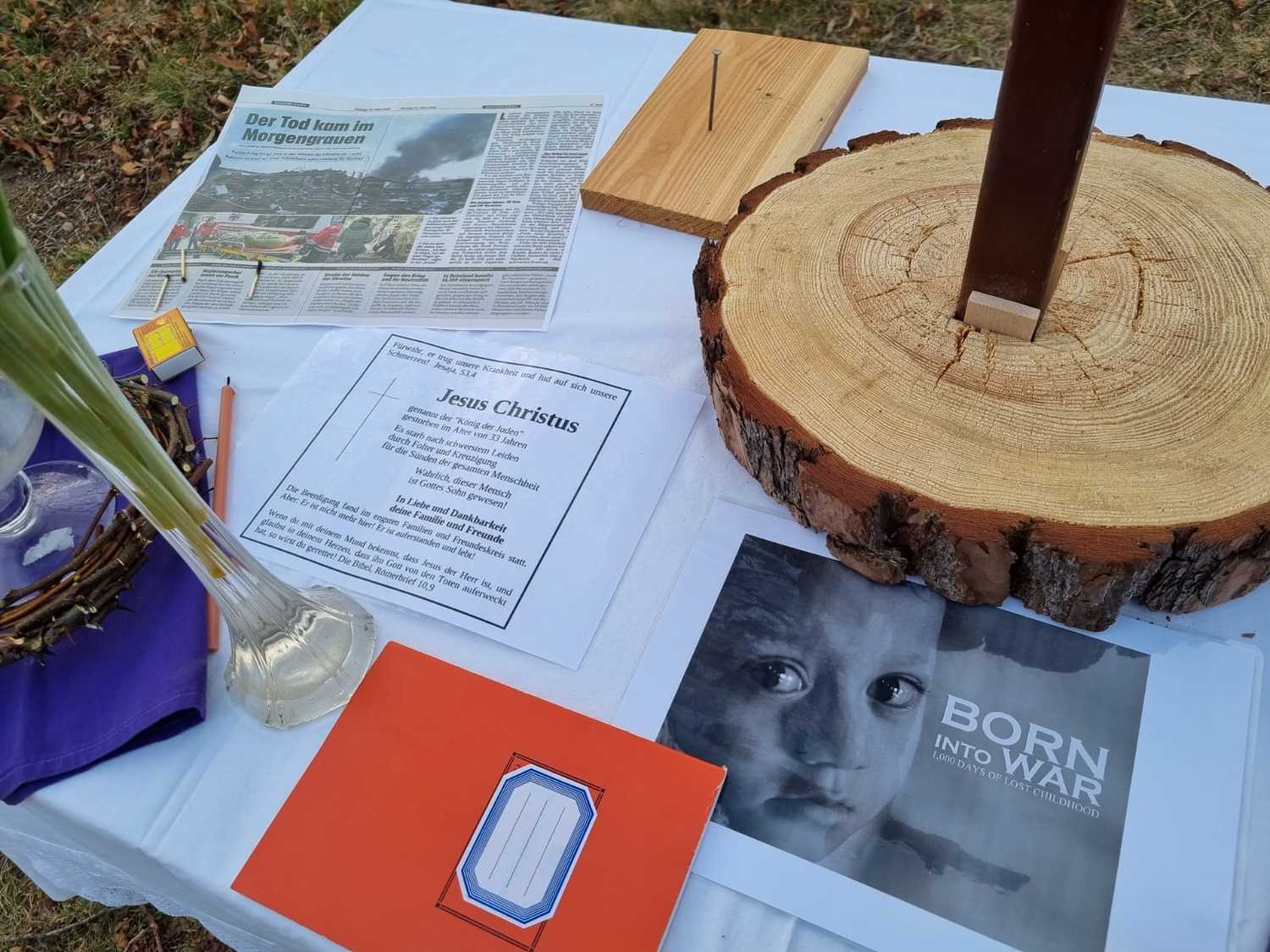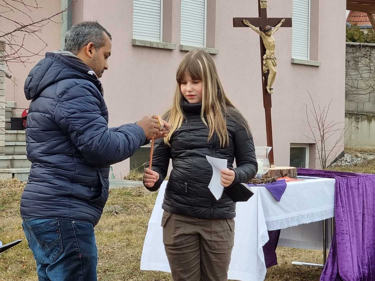 Die Betrachtung der einzelnen Stationen wurde mit Symbolen ergänzt, die die Kinder und Jugendlichen zum Kreuz brachten und so bezeugten, dass das Kreuz nicht nur ein Zeichen des Leides, sondern auch ein Zeichen der Hoffnung ist.