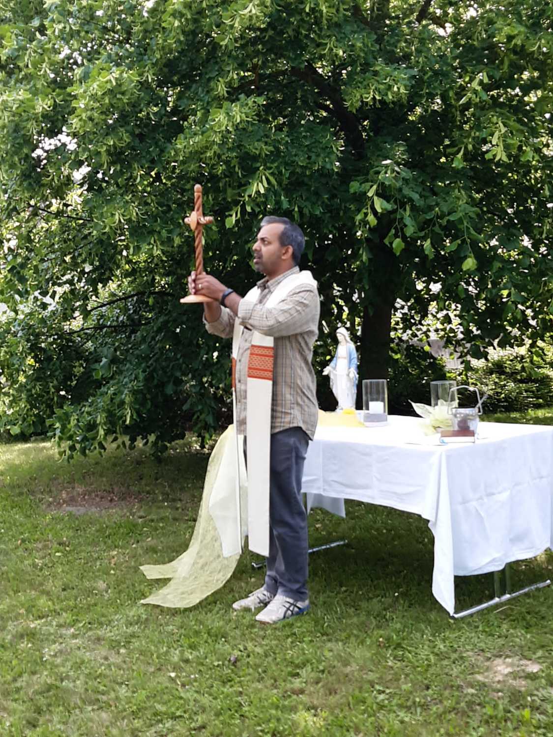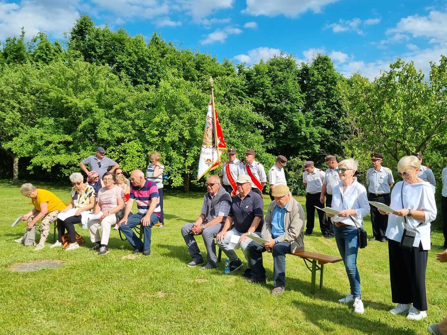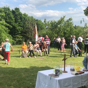 Am Sonntag, dem 22. Mai traf sich eine Schar gut gelaunter Wanderer bei der Josefsäule und startete nach einer kurzen Maiandacht durch die Natur Richtung Florianimarterl. Dort haben uns die Lackenbacher Florianijünger sehr zahlreich erwartet und mit uns die nächste kurze Andacht gestaltet. Gemeinsam, mit den Florianis voran, ging es dann weiter in den Pfarrhofgarten Lackenbach, wo dann um Fruchtbarkeit für Feld und Flur, aber auch um Bewahrung vor Unwettern gebetet wurde.