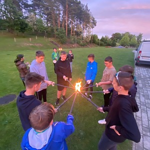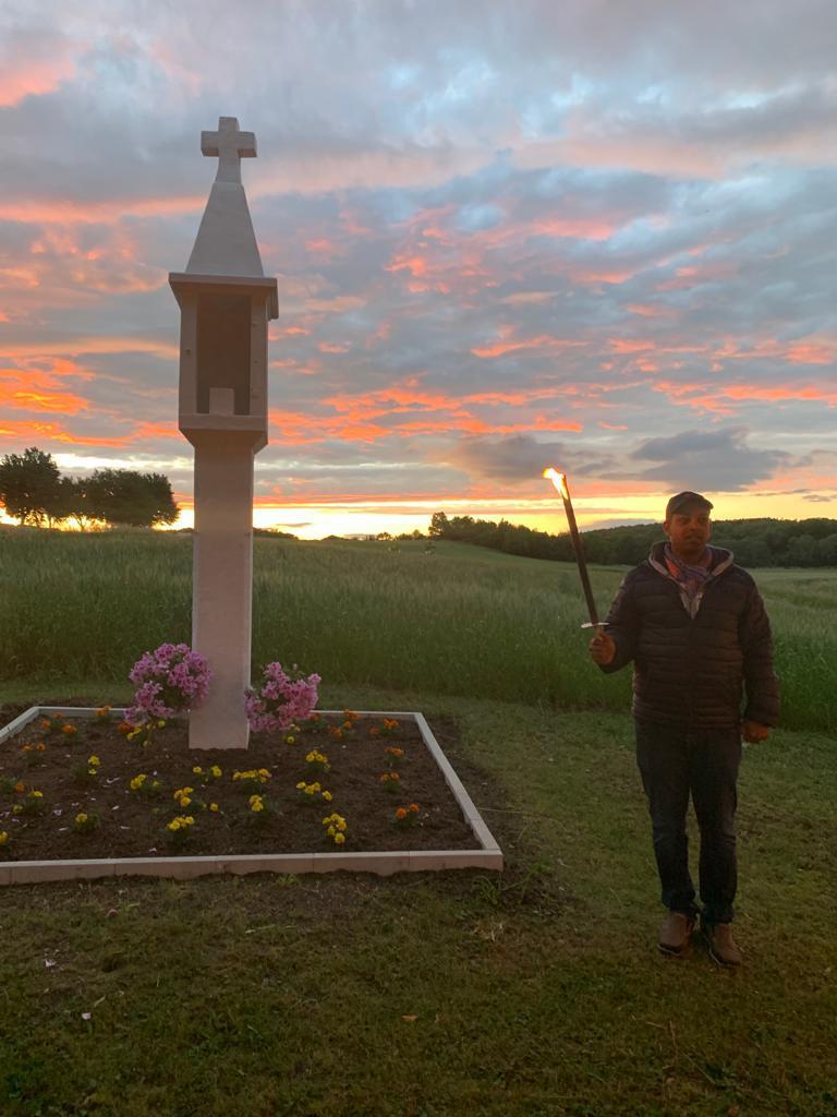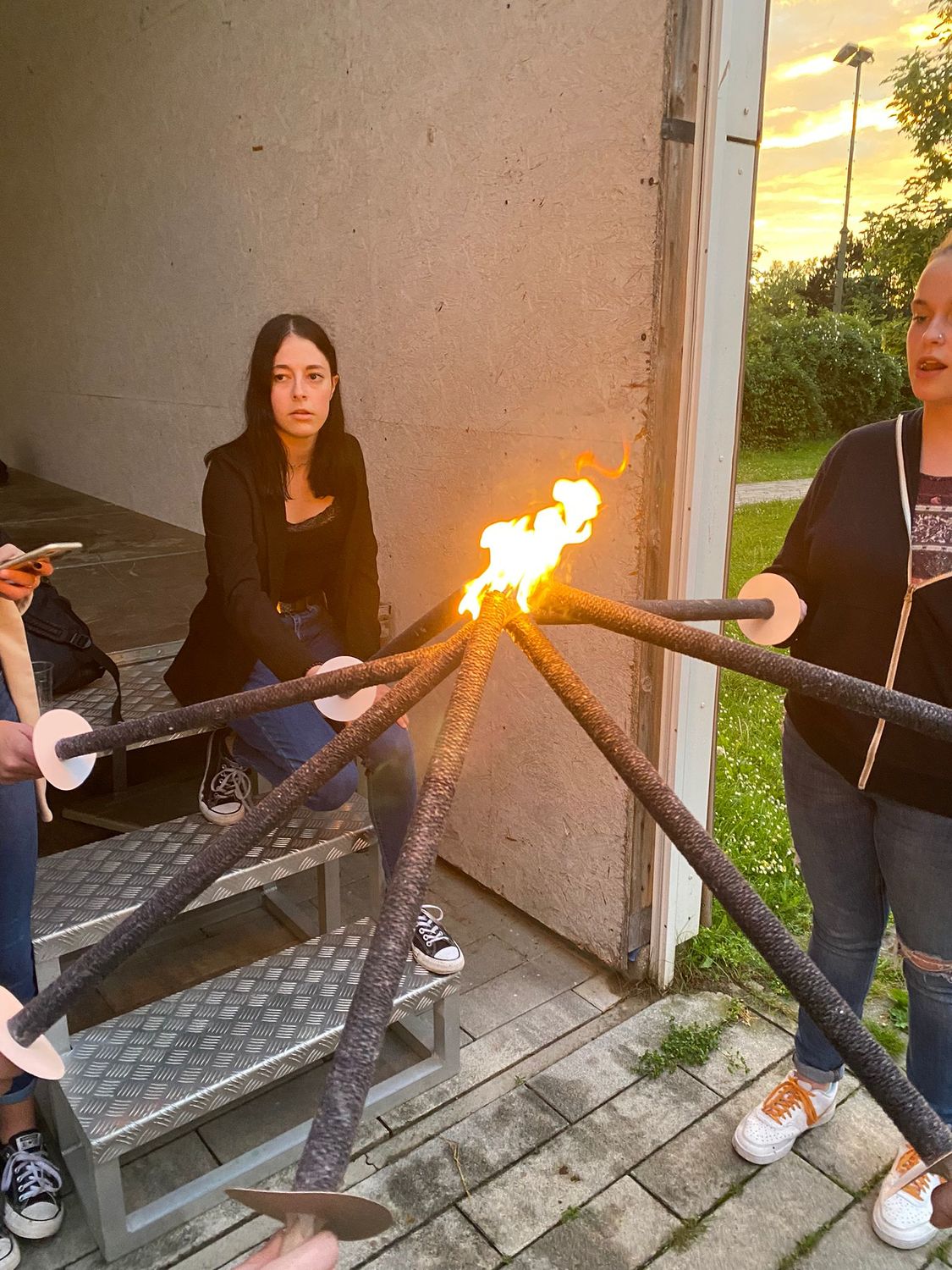 Die Firmlinge trafen sich am frühen Abend zu einer Firmstunde in der freien Natur. Pfarrer Shinto erzählte Interessantes zum Thema „Hl. Geist – Feuer und Flamme“ und diskutierte mit den Jugendlichen, wofür sie brennen.